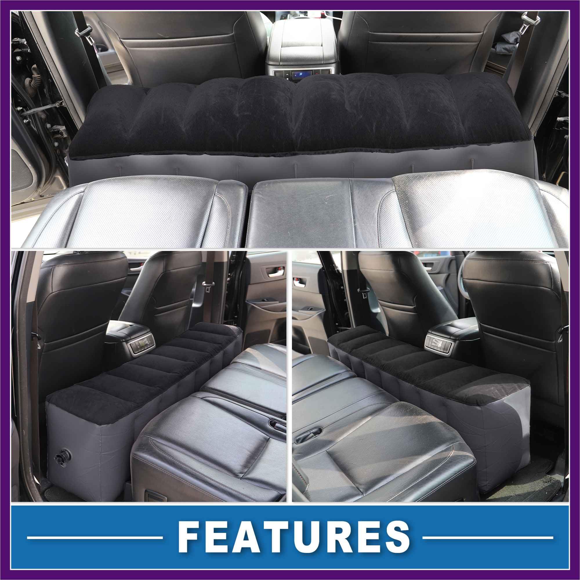 YOUTALLY 車中泊マット 後部座席エアーベッド カーマットレス ギャップパッド 间隙 ベッド 車用ベッド 汎用 簡易ベッド カー用品 車内泊 キャンプ用品 快適空間 仮眠 旅行用 収納袋付 (ブラック)
