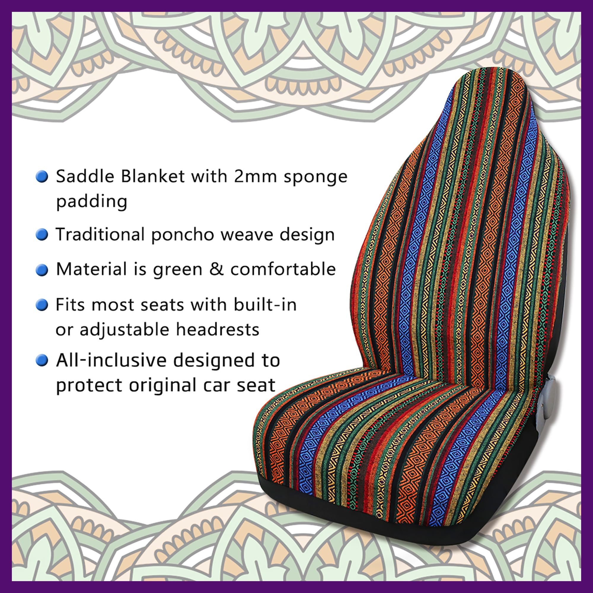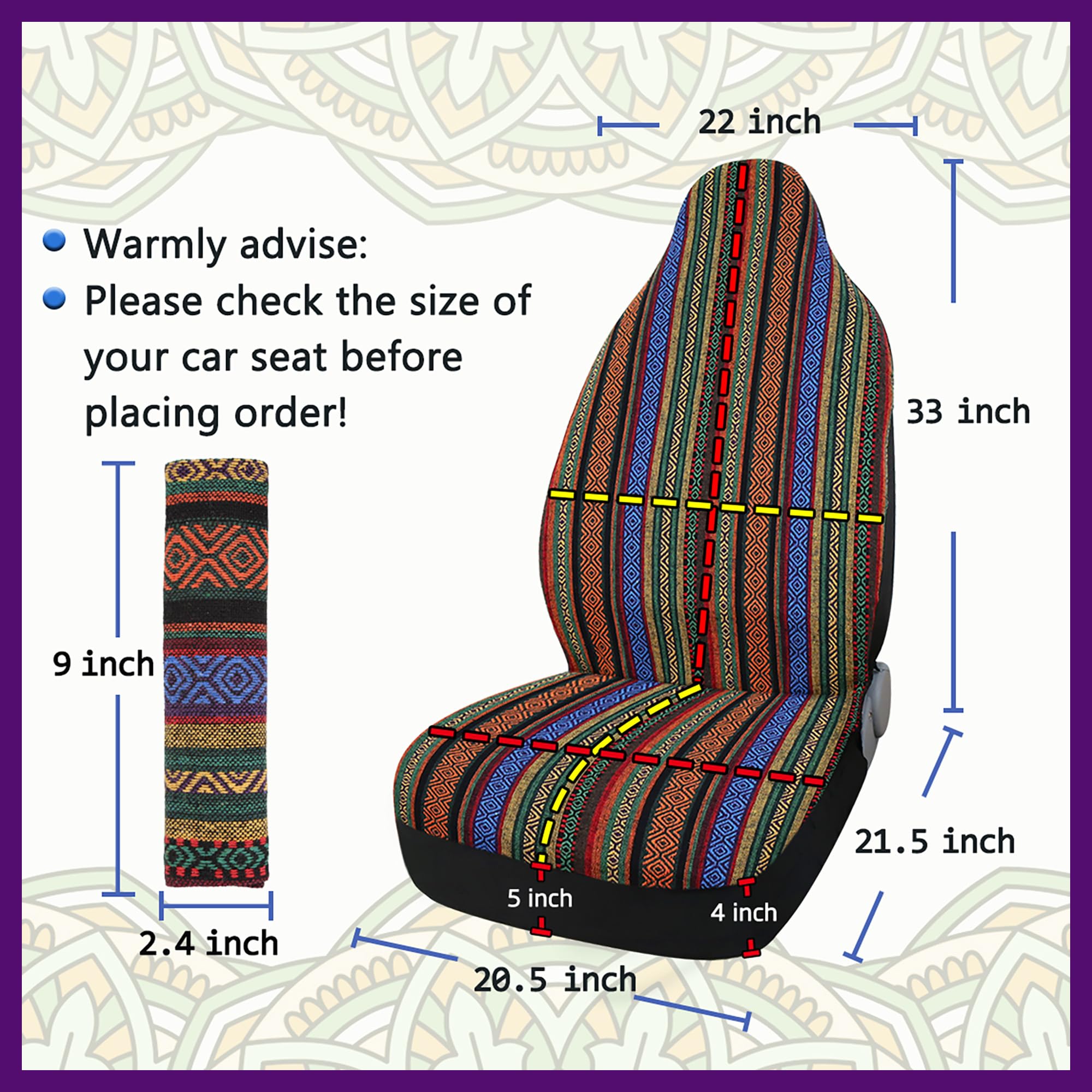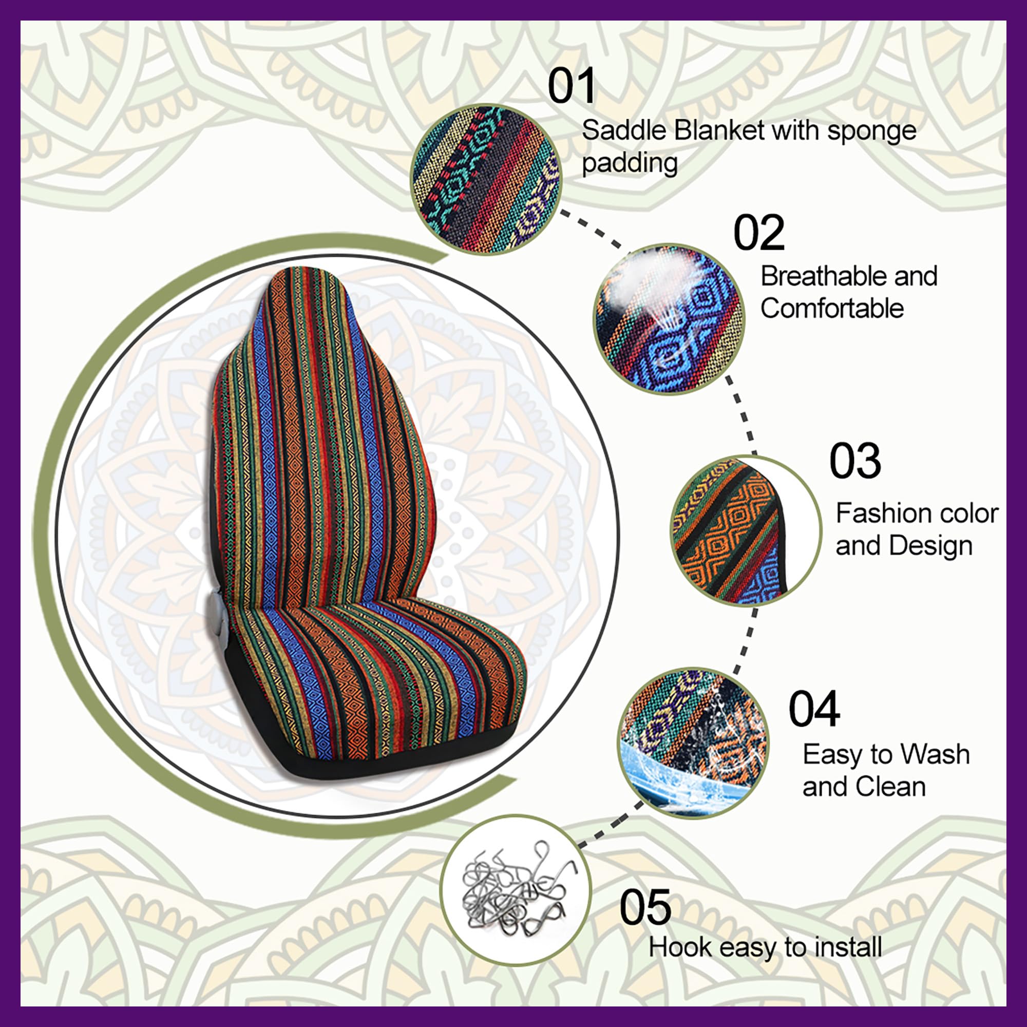 uxcell シートカバー カーシートカバー エスニックスタイル バケットシート 汎用 マルチカラー7 1個入り