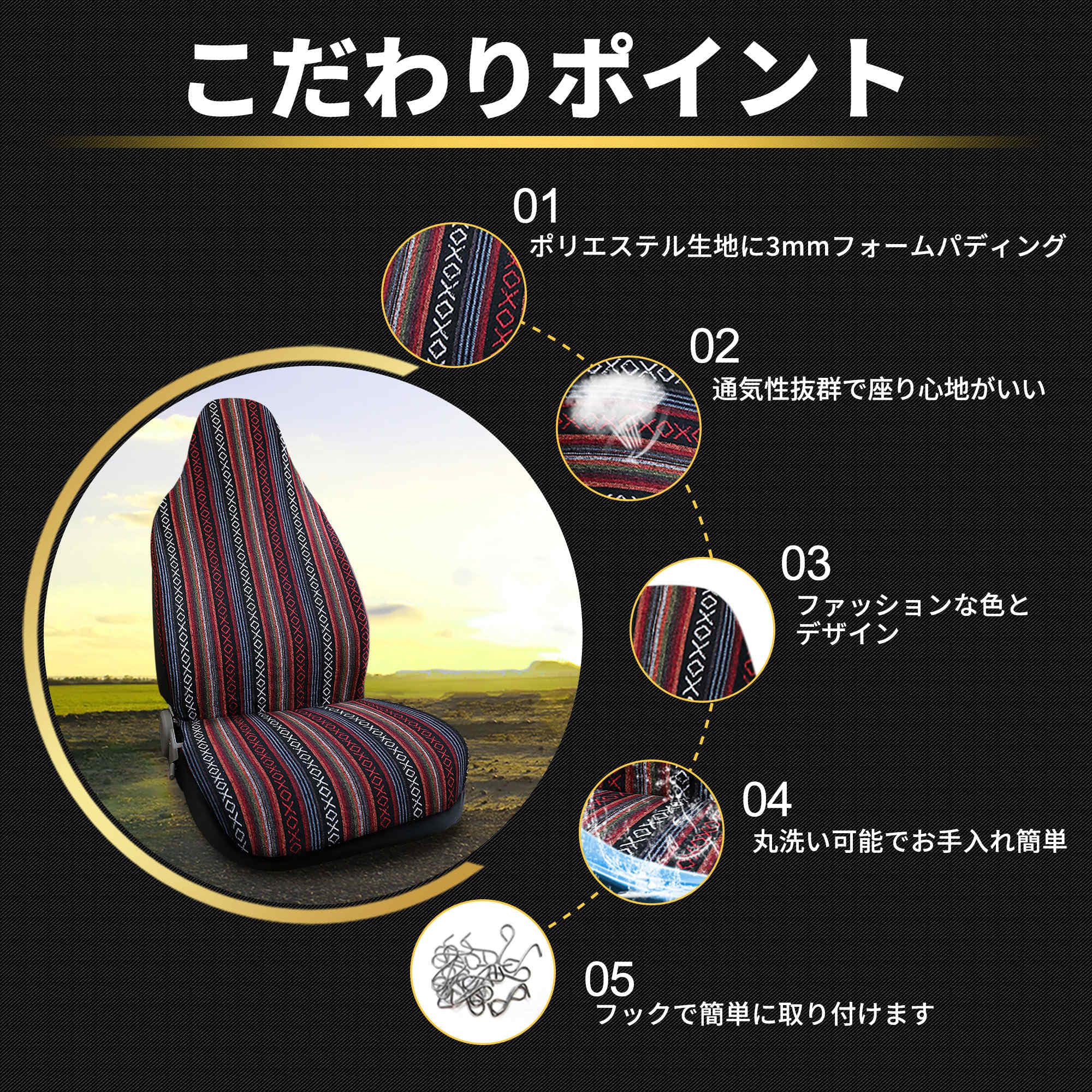 [商品名]バハブランケット汎用バケットシートカバー[商品説明]古典的な外観とアップデートされた感覚が、愛車の座席を美しく演出します.ほとんどの座席に適合する汎用バケットシートカバーで、素敵な席を保護したり、古さを隠したりするのに役立ちます.1パックで販売しています.[特徴]・サウスウエストからインスピレーションを得たデザインで、伝統的な外観と風を楽しめます.・疲れにくく快適な座り心地を提供します.・内蔵または調整可能なヘッドレストに対応し、ほとんどの座席に適合します.[取付方法]座席カバーを座席の上に引っ張り、滑らかに取り付けます.フラップをカーシートの隙間にしっかりと引っ張ります.シートカバーの底を座席の底に引っ張ります.弾性ストラップをカーシートの底にフック付きで取り付け、スムーズに取り付けます. [パッケージ内容] 1 x シートカバー