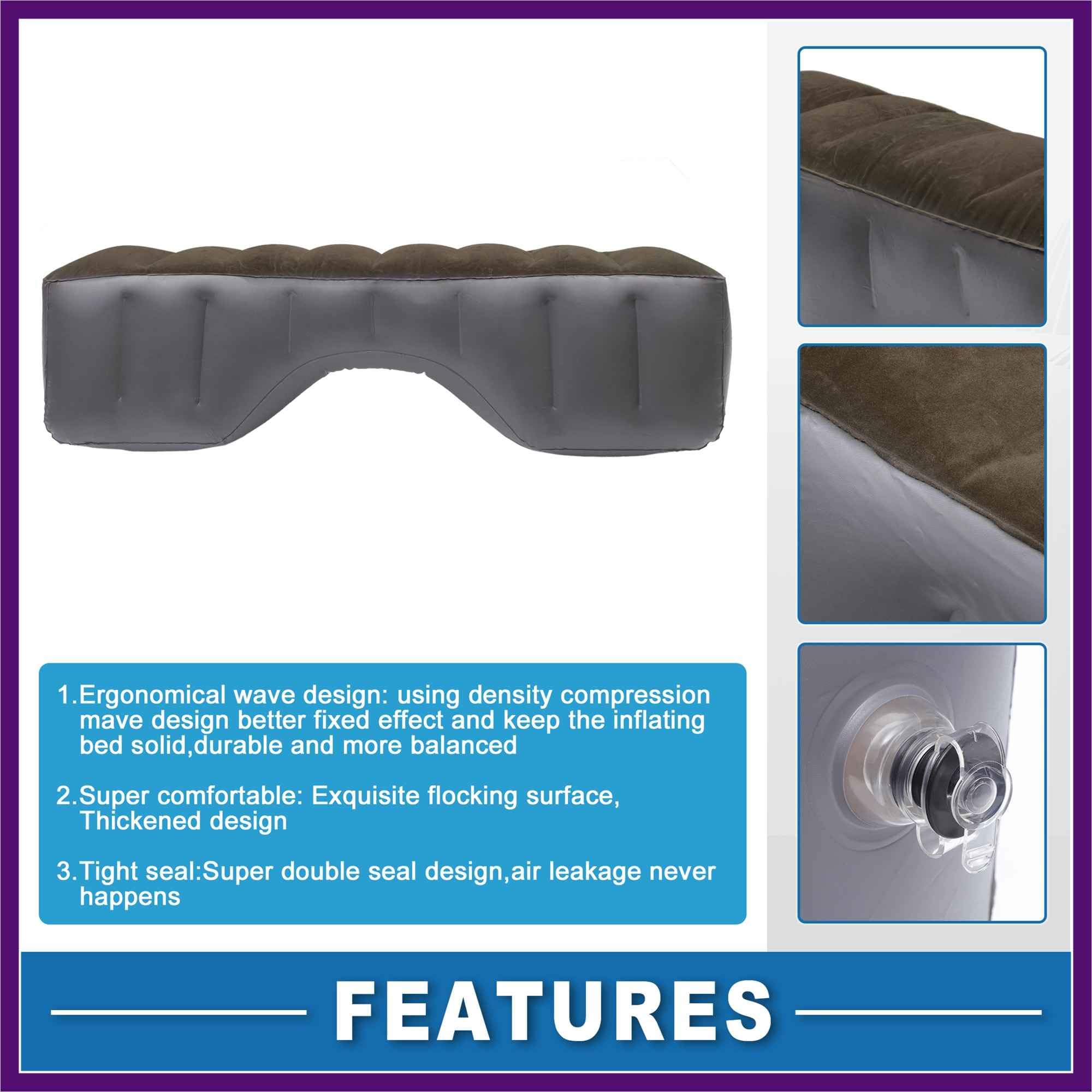 特徴:通気性のあるPVC素材で、長期使用後も変形しにくい波状ストライプデザインで快適さを向上ポンプで簡単に膨らませて、後部座席を快適なベッドに変えることができます詳細:素材:PVC、フロッキングカラー:ディープブラウン、グレーサイズ:130x27x37cm / 51.18