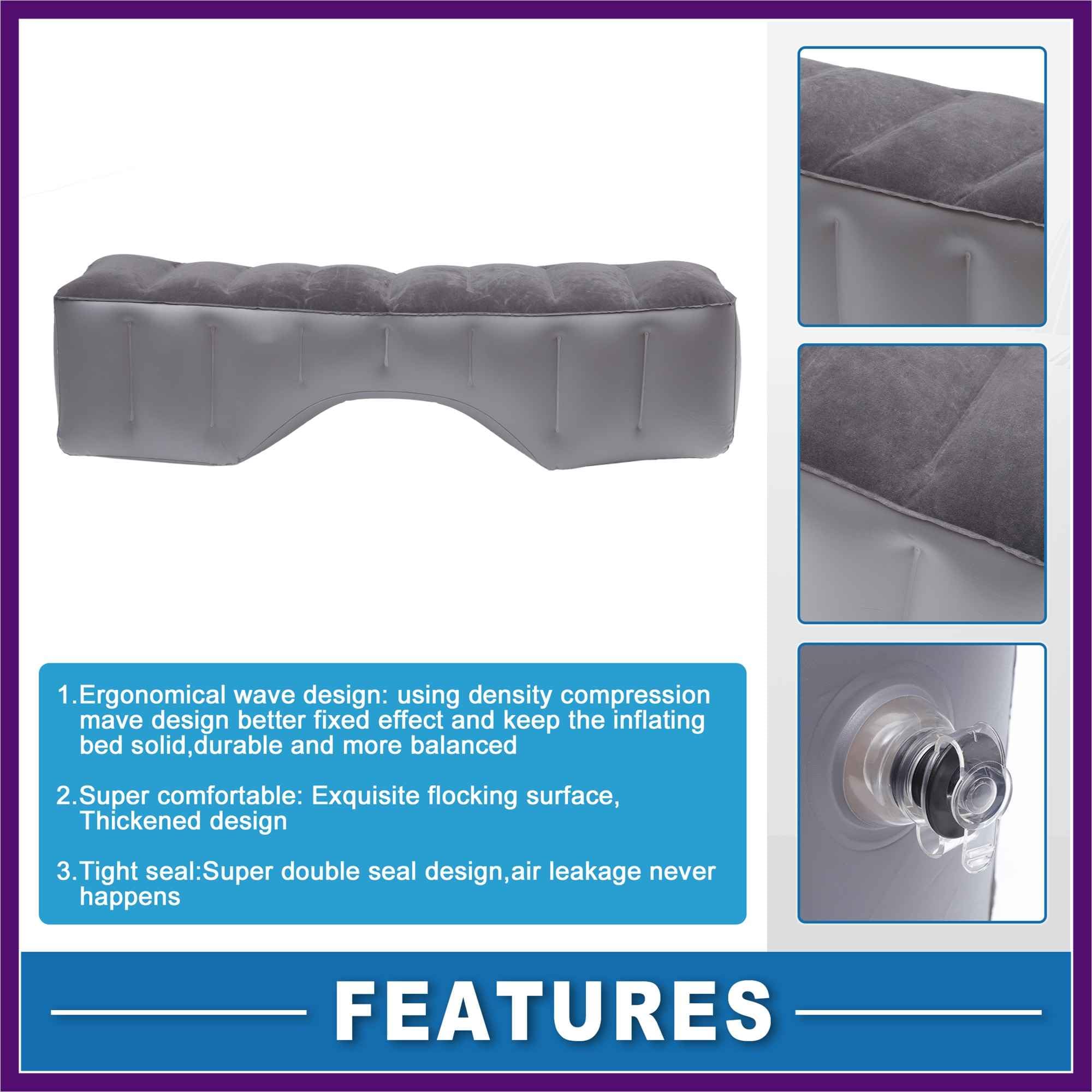 特徴:通気性のあるPVC素材で作られており、長期使用後も変形しにくいです.波状ストライプデザインが快適さを増します.ポンプで簡単に膨らませて、後部座席を快適なベッドに変えることができます.詳細:素材:PVC、フロッキングカラー:グレーサイズ:130x27x37cm / 51.18
