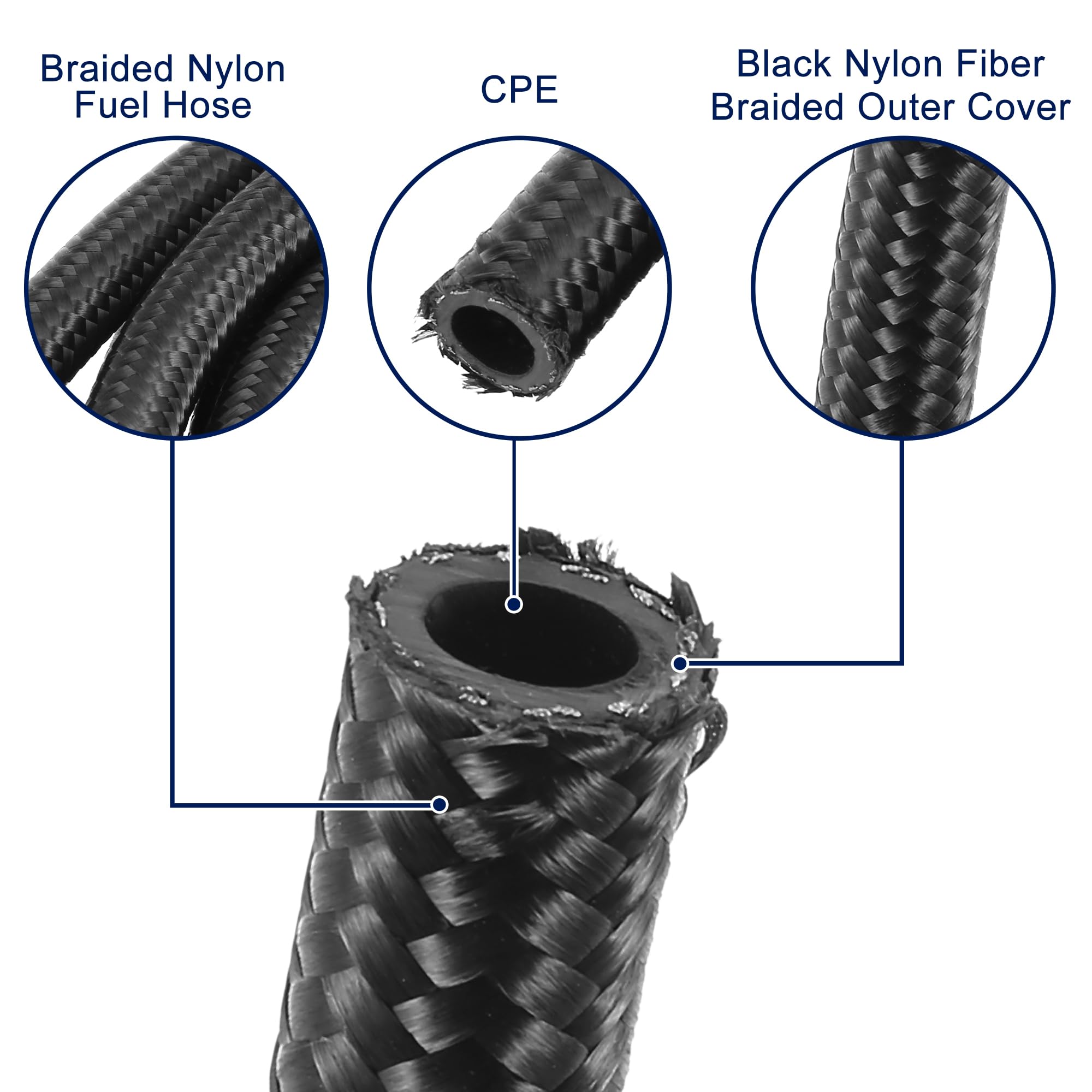 燃料ホース ガソリンホース 内径8mm 外径14mm 全長3m 高性能 ゴムホース フューエルホース 耐圧・耐水・耐候・耐油ホース 自動車 バイク用 (内径8mm, 3m)