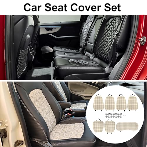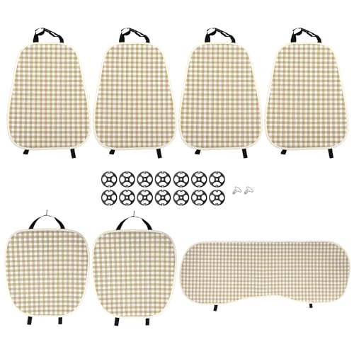 FUELHOOD 1セット 通気性 写真の通り カーシートカバーパッドセット 柔らかく 7個 前列と後列統合シートプロテクター 滑り止めデザイン ブラウン