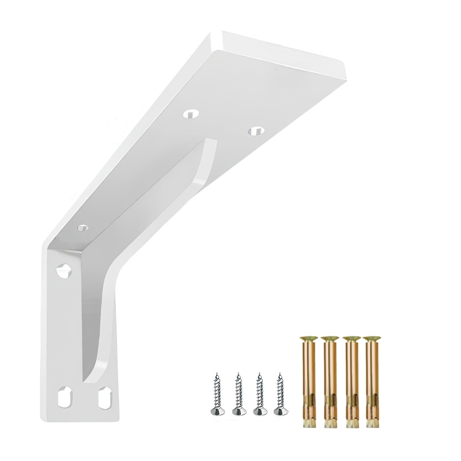 MLOQI 棚受け金具 ブラケット 厚さ5mm 頑丈棚受け 金具 ビス付 最大荷重50KG 隠し棚受け 棚の補強 l字金具 ホワイト(4本 30cm)