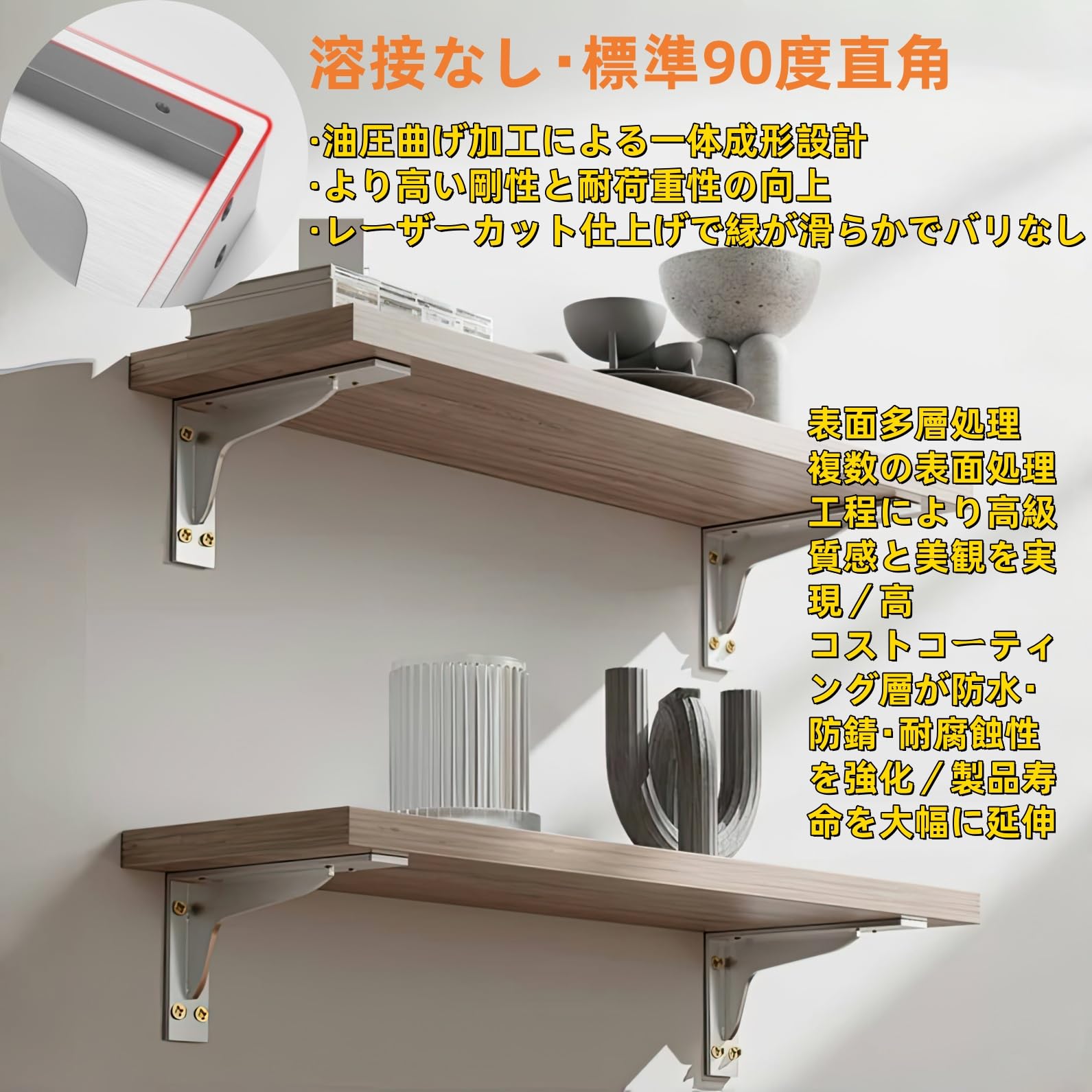 MLOQI 棚受け金具 ブラケット 厚さ5mm 頑丈棚受け 金具 ビス付 最大荷重50KG 隠し棚受け 棚の補強 l字金具 ホワイト(6本 10cm)