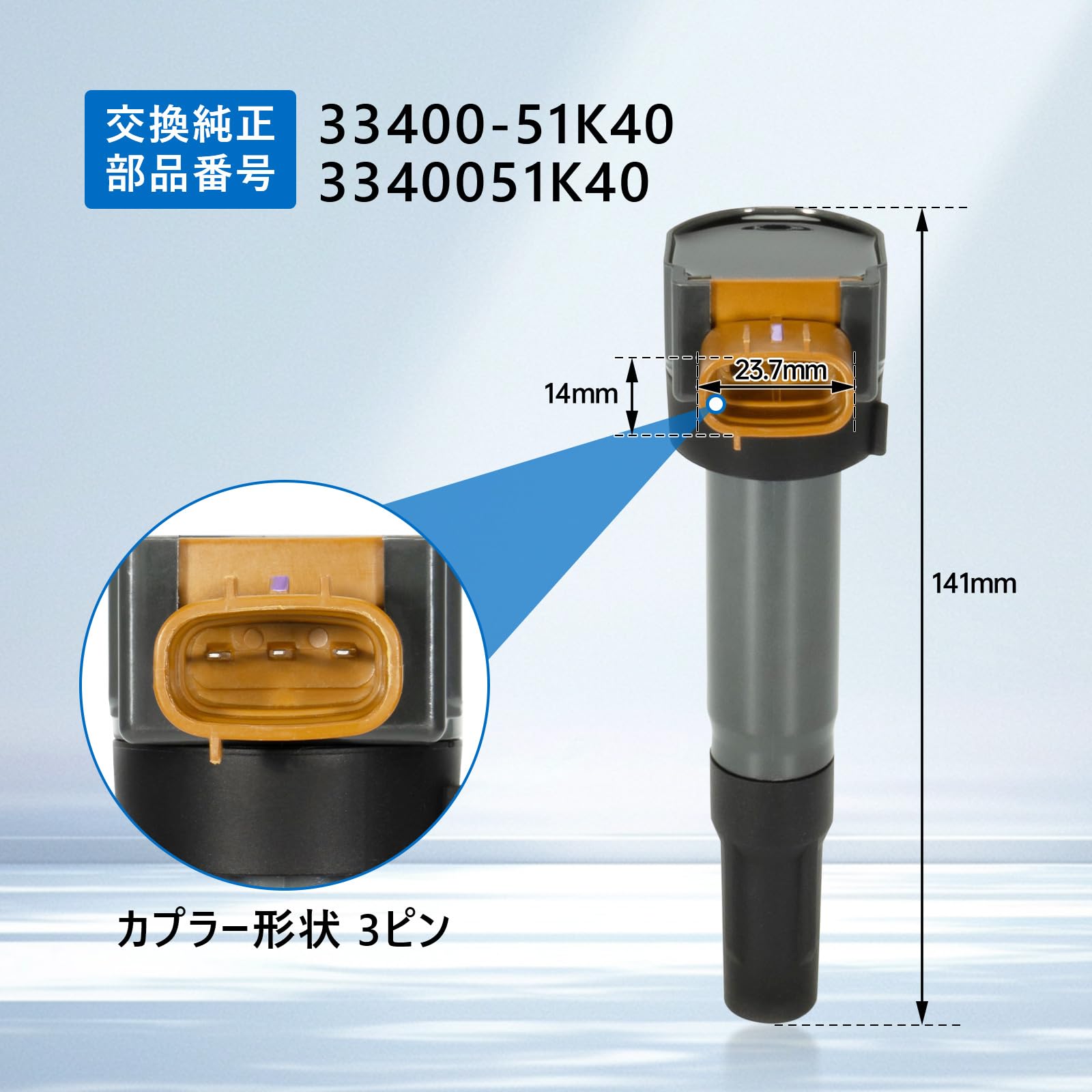 イグニッションコイル ダイハツ 車用 4ピン エンジンパーツ 耐久性 修理 互換 3本セット 19500-B2050 19500-B2051