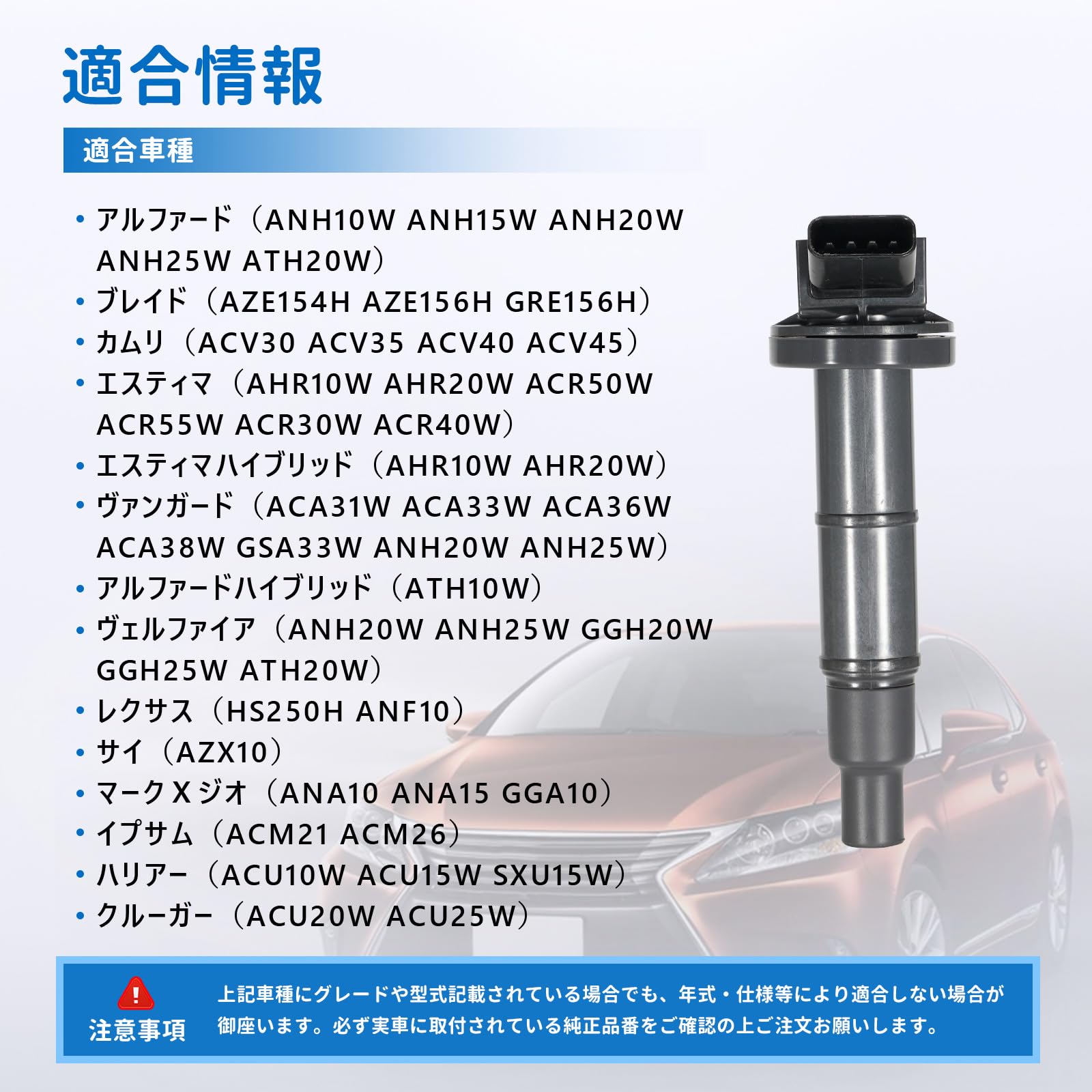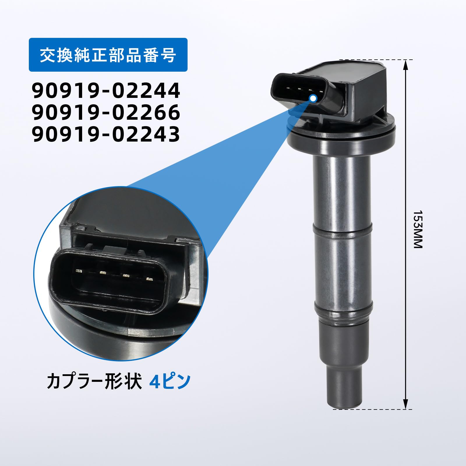 1PZ JP2-IG3 4本セット トヨタ イグニッションコイル 4ピン 90919-02244 90919-02266 90919-02243 ハリアー エスティマ アルファード イプサム ヴェルファイア ACR50W ANH10W ANH20W ブレイド ヴァンガード レクサス クルーガー サイ マークXジオ カムリ