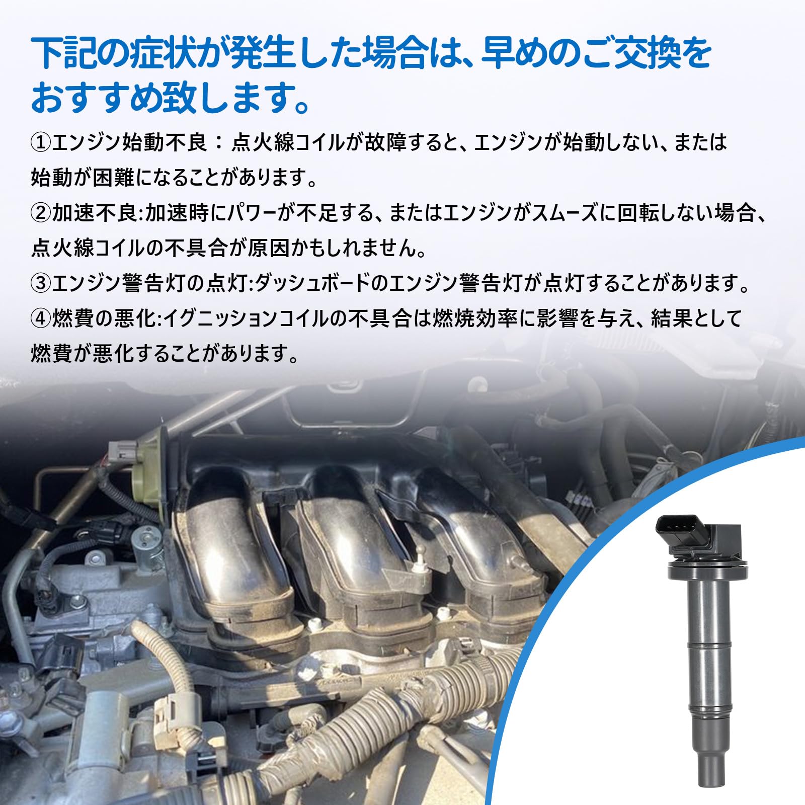 イグニッションコイル トヨタ ヴォクシー ノア ウィッシュ アイシス カローラフィールダー ZRR ZGE 70G 70W 75G 75W 20G 20W 21G 22W 25G 点火コイル 90919-02252 / 90919-02258 / 90919-C2003 四本入
