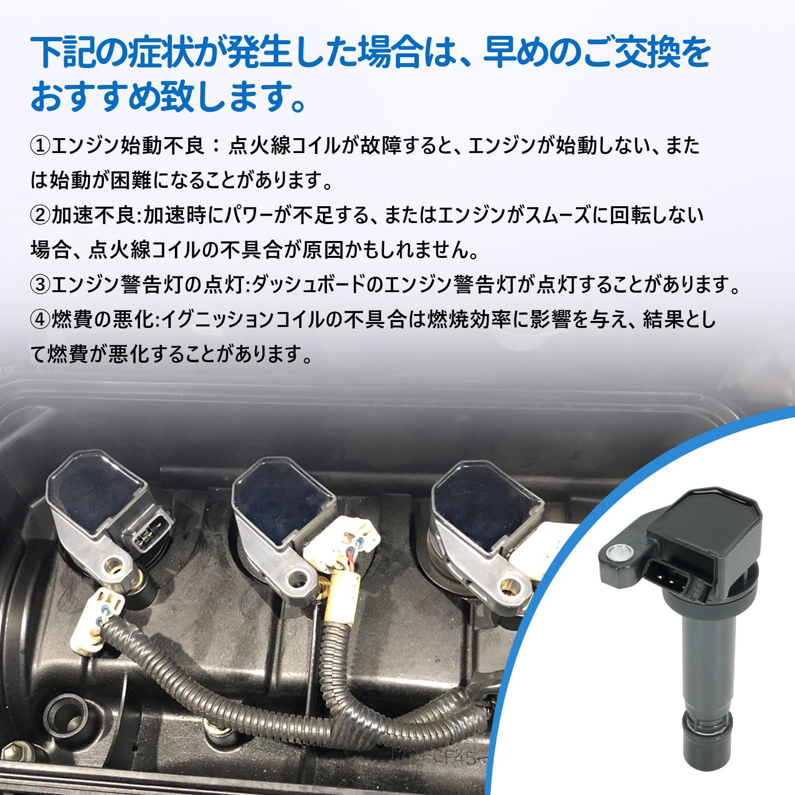1PZ JPK-V8W 4本セット イグニッションコイル 30520-RRA-007 ホンダ ステップワゴン/スパーダ RG1 RG2 RG3 RF3 RF5 RF8 CR-V エディックス BE3 BE4 エリシオン RR1 RR2 オデッセイ RB1 RB2 30520-PNC-004 30520-RWC-A01 30520-PNA-007 車用パーツ 社外品 修理 互換