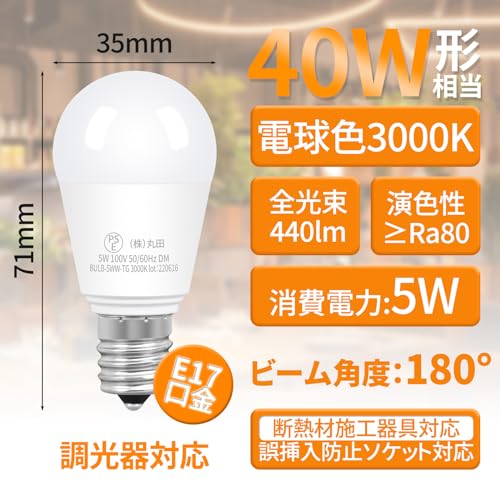 xydled LED電球 E17口金 40W形相当 調光器対応 440lm 電球色 3000kミニクリプトン電球 ミニランプ形 調光電球 広配光タイプ 密閉形器具対応 断熱材器具対応 6個セット (電球色)