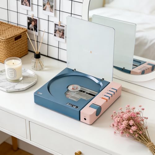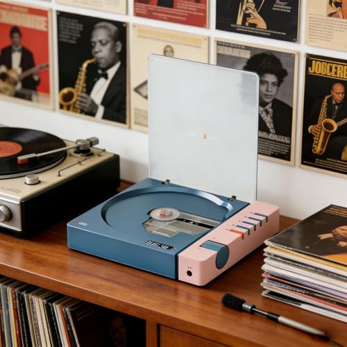 syitren R300 ポータブルcdプレーヤー bluetooth対応小型cdプレイヤー 充電式内蔵 2000mahバッテリーでワイヤレス再生可能 type-c充電 aux-out光ファイバー出力 (PINK)