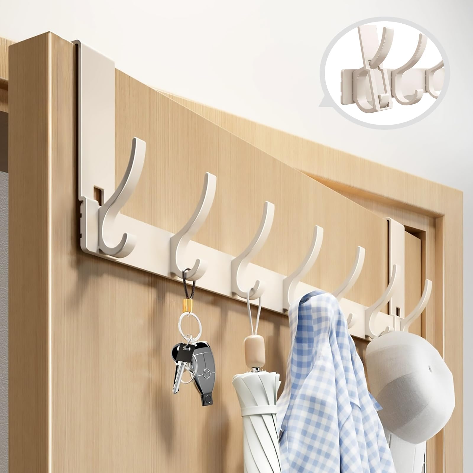 Vividorad ドアフック 7連 フック ドアハンガー【ネジゼロ& 工具なしで簡単取り付け】約47*18CM 扉 フック 玄関掛け 吊り下げ 帽子ハンガー カバン掛け ハンガー掛け 強い耐荷重 変形しにくい 静音対応 大容量 玄関/浴室/トイレ/キッチン/玄関 収納用
