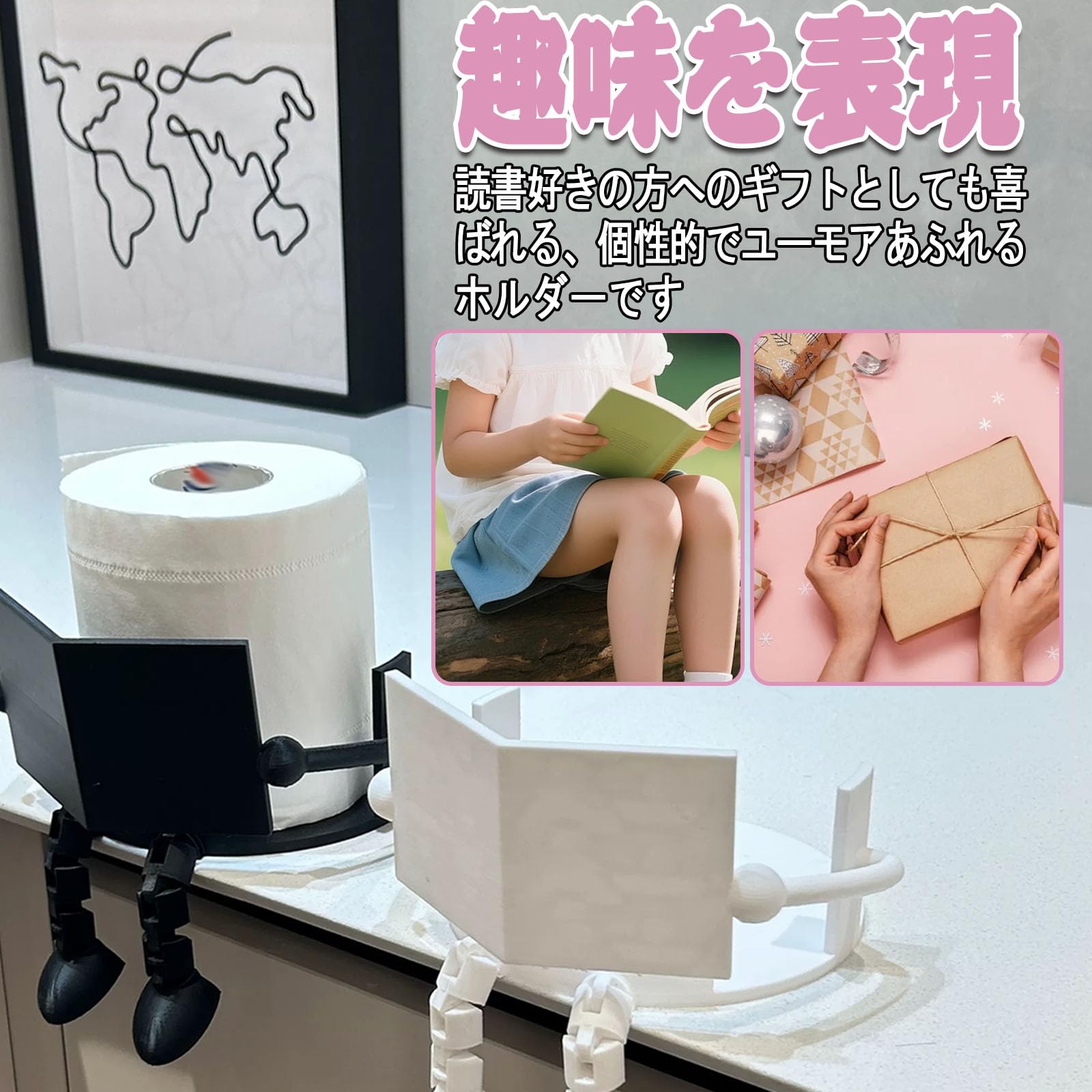 読書トイレットペーパーホルダー 読書トイレットペーパー収納ラック 自立 面白い 可愛い ティッシュロールオーガナイザー かわいい 楽しい ペーパーディスペンサー 取り付け簡単 リビングルーム キッチン 洗面所 バスルームアクセサリー 贈り物にも最適 (ホワイト) [並行輸入品]