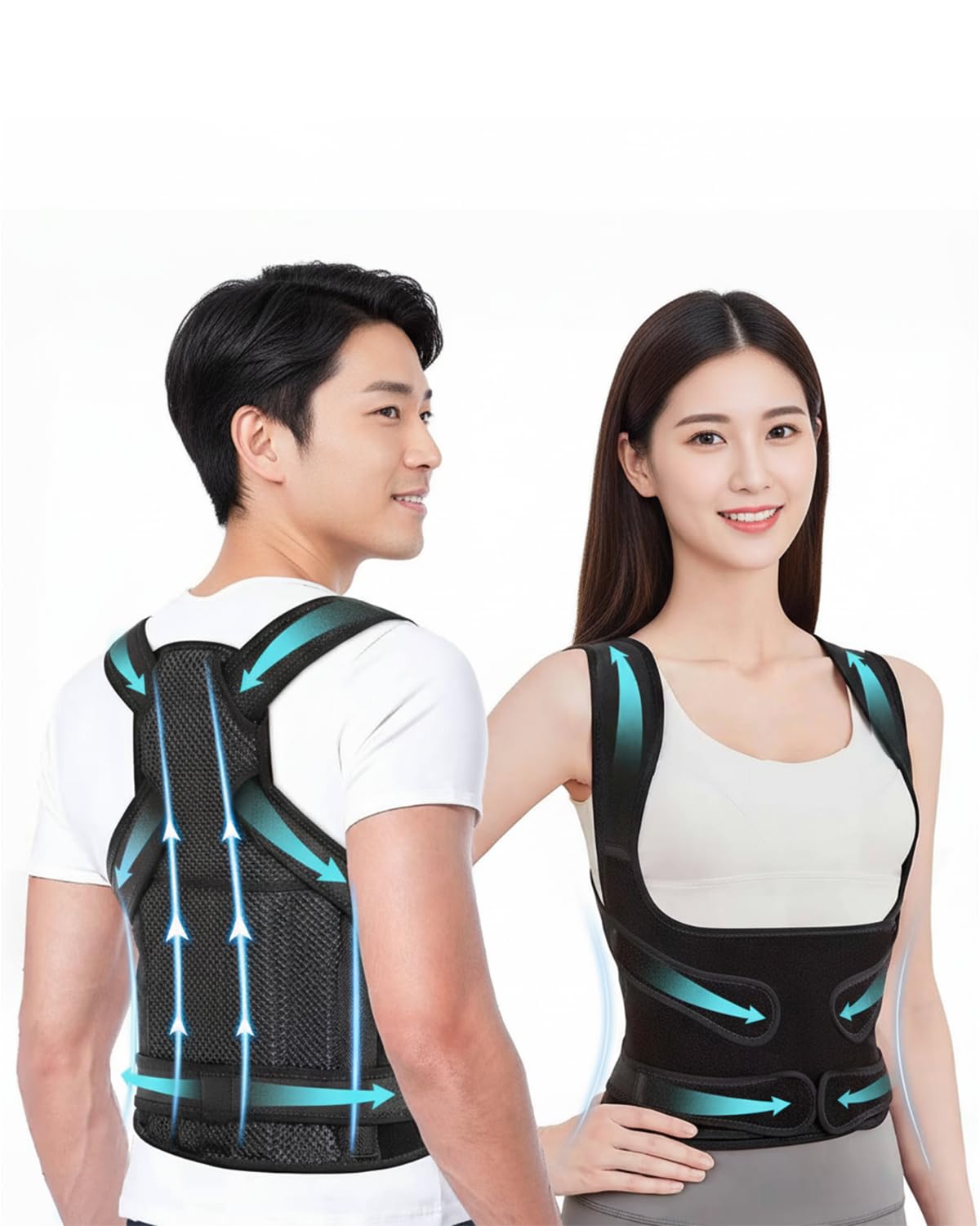 姿勢サポーター 男女兼用 背中用サポーター 通気性優れ 脱着簡単 四季通用 調節可伸縮ベルト (XL)