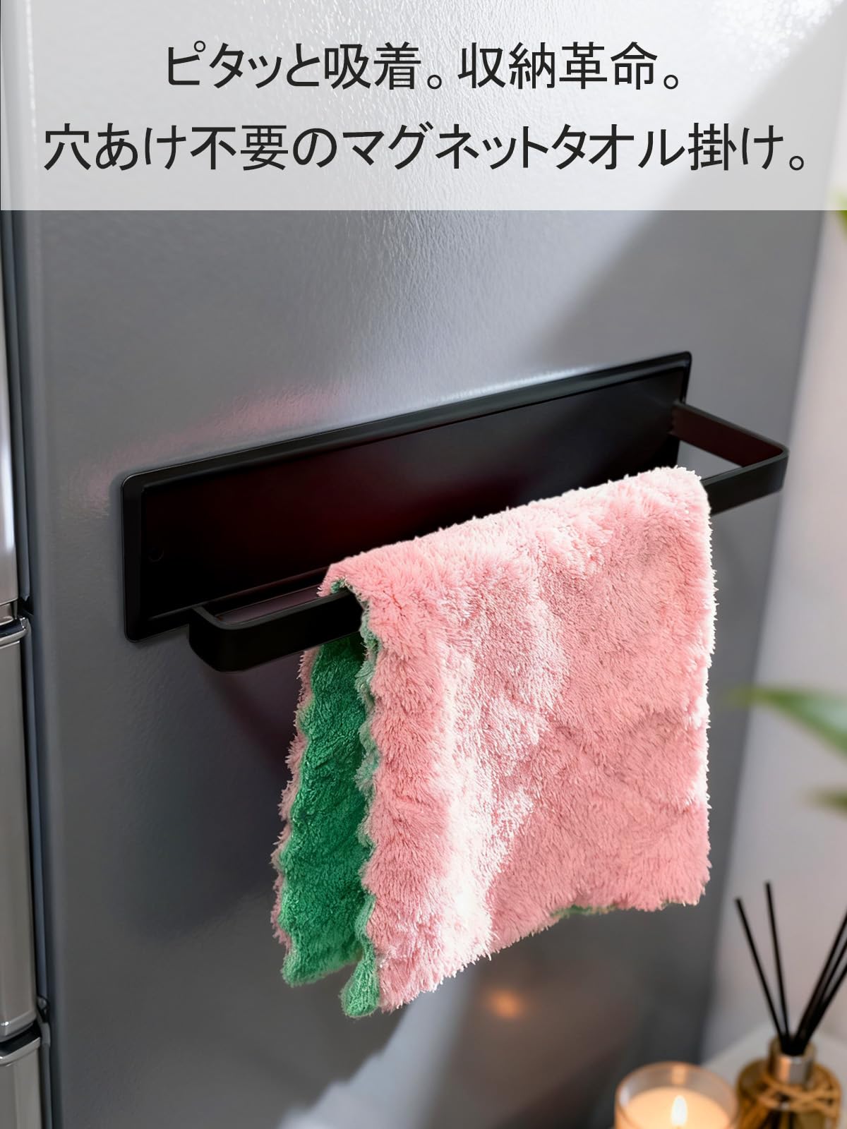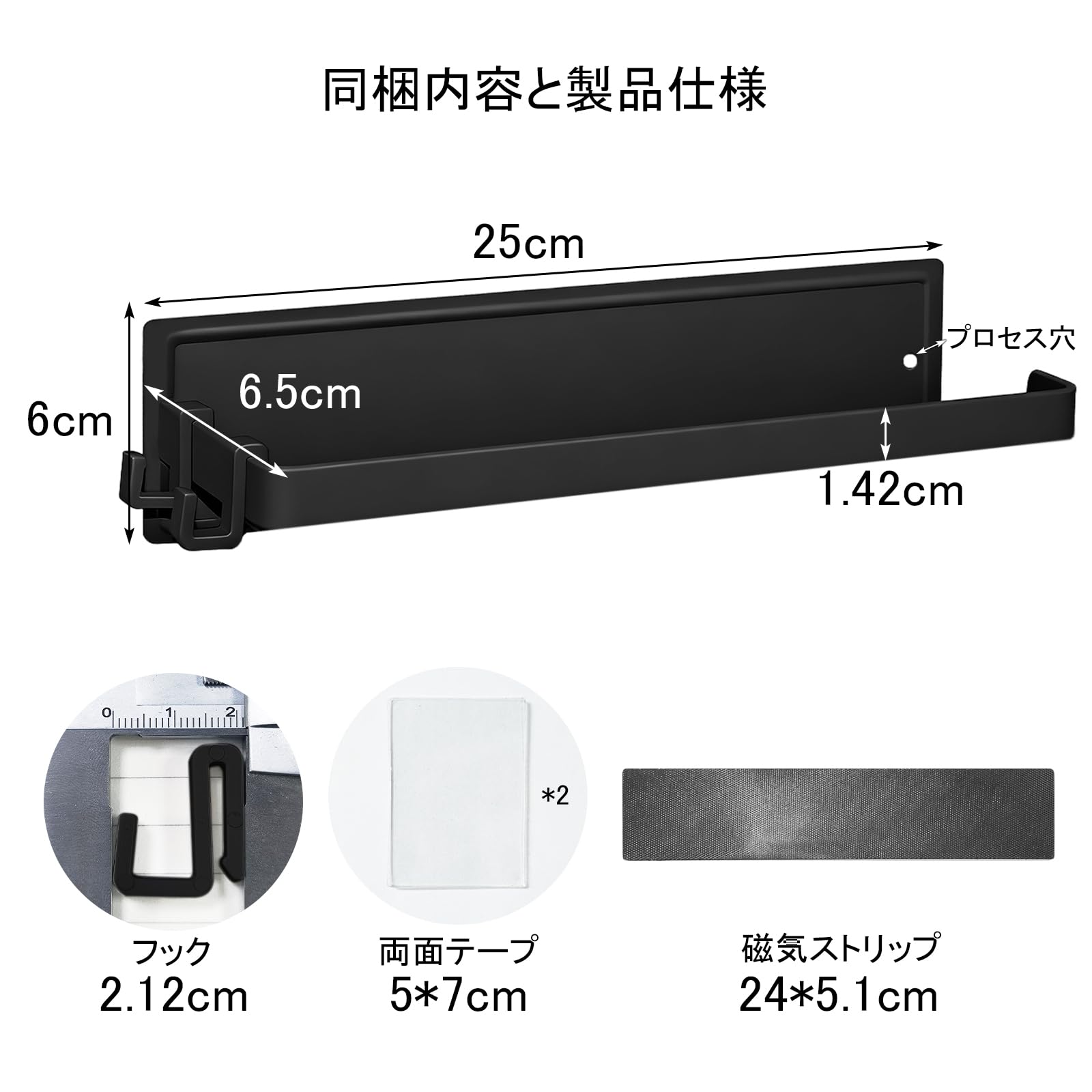 Reelyo マグネット キッチンペーパーホルダー タオルハンガー 簡単取付 プレート タオル掛け 台所/冷蔵庫/洗濯機/バスルーム/トイレに 壁面収納 ラック (ブラック)