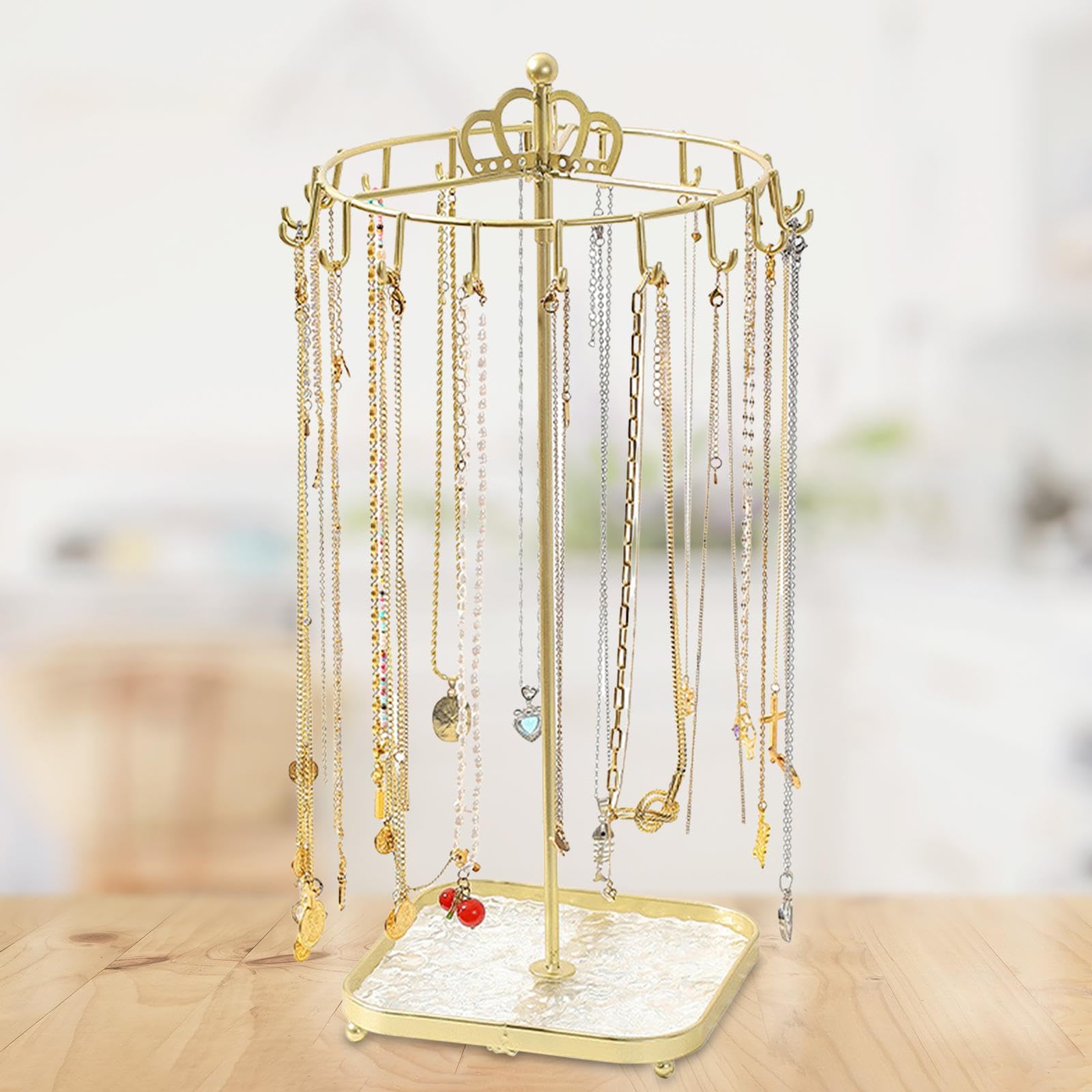 LOL-FUN 回転ジュエリーホルダー、ジュエリー ツリー スタンド、ジュエリーオーガナイザー、ネックレスハンガー、ネックレスイヤリング収納棚 アクセサリースタンドジュエリーディスプレイスタンドリングネックレス用, 金