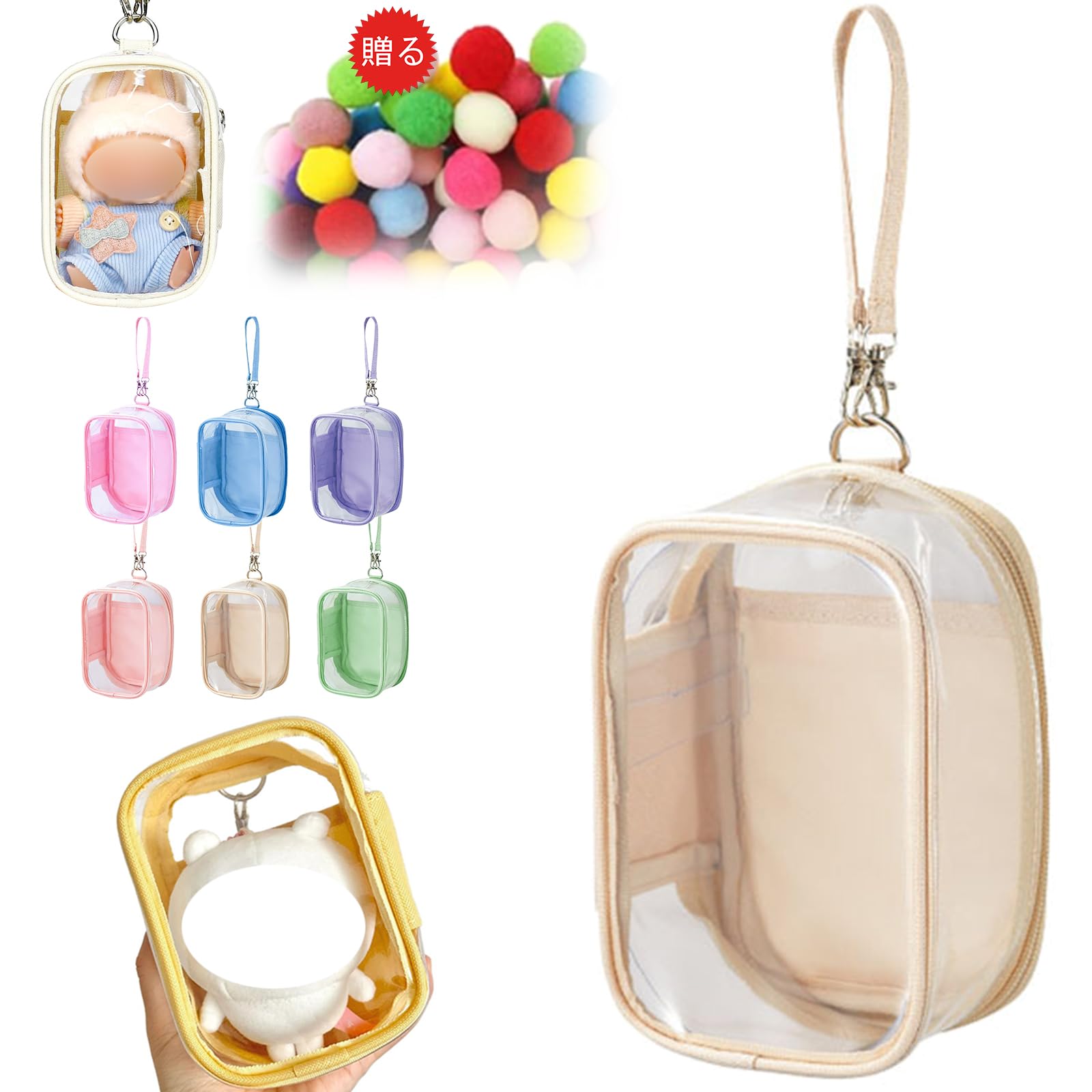 ぬいポーチ ぬいぐるみポーチ 痛バッグ 防塵 PVC 人形入れ 収納バッグ ぬいぐるみ用 地雷 小物 防水 ファスナー用 通勤 通学 男女兼用 ポンポンボール付 (S(10x5.7x14.2cm),ベージュ) [並行輸入品]
