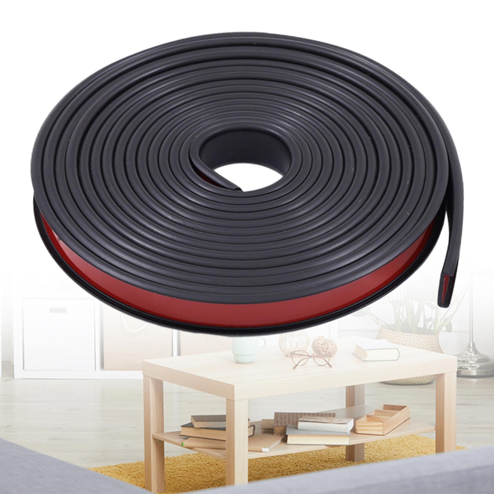 KLKCMS U字型家具エッジバンディング 家具エッジプロテクター 柔軟 エッジングトリム 粘着エッジガード デスクプロテクター 自己粘着ベニヤエッジング ハードボード キャビネット修理用 テーブルキャビネット用 18mm×10m, 黒