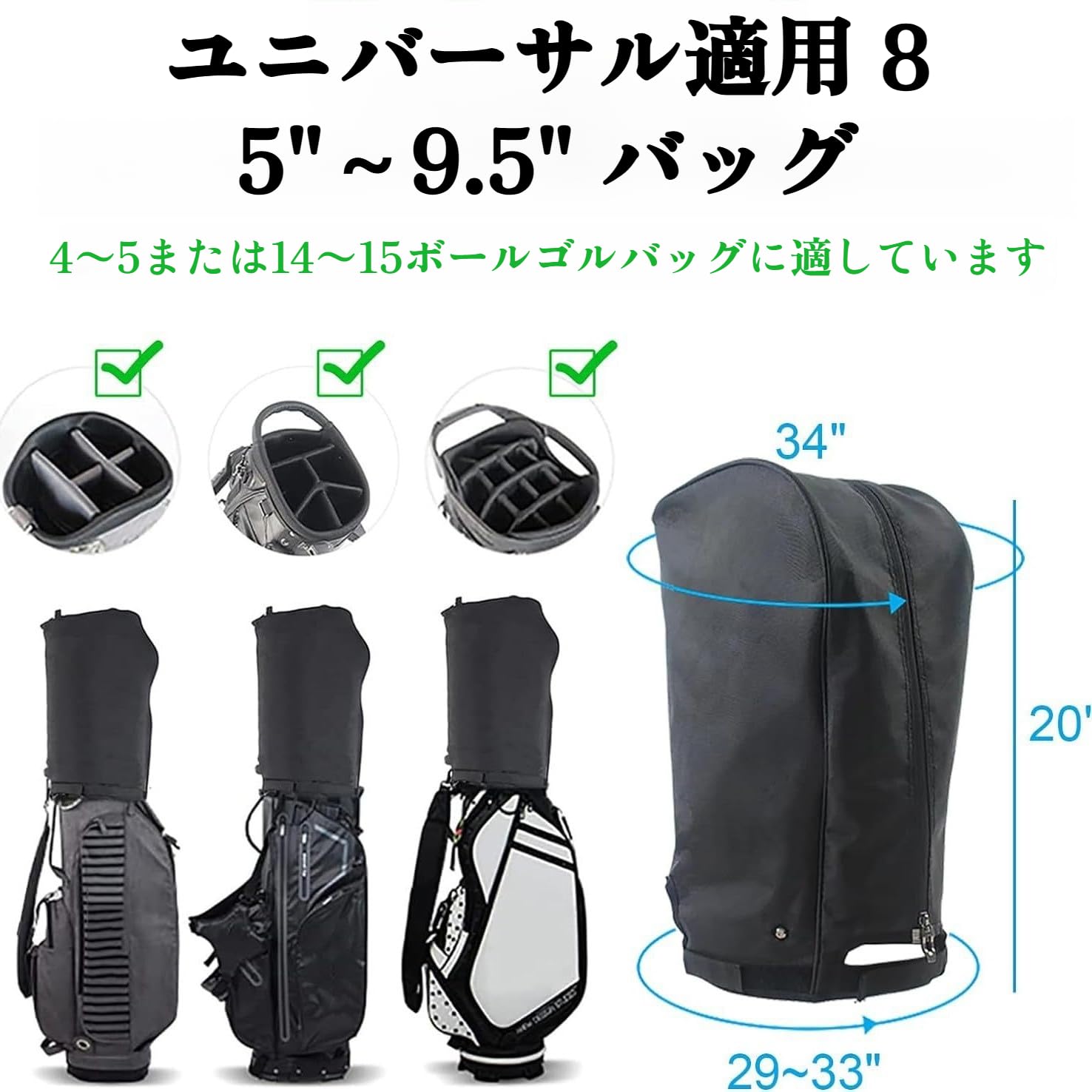 [Luvian]2025new ゴルフバッグカバー キャディバッグ フードカバー 防水 耐紫外線 帯電防止仕様 コンパクト設計 8.5~9.5型対応 軽量ポリエステル製 クラブ保護用 全天候対応 ゴルフ旅行用 Golf Bag(34*20*33)