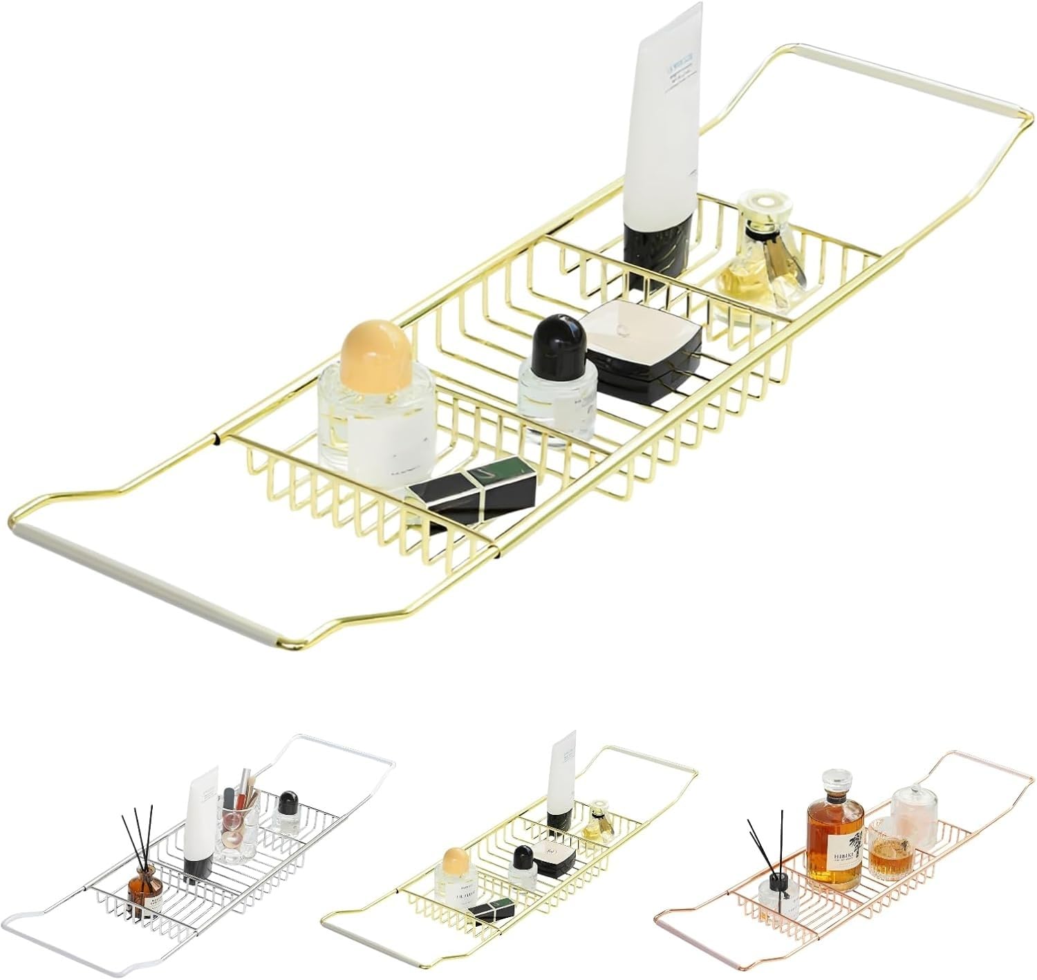 [AOKOWN]バスタブトレー お風呂【格納可能なデザイン62-98cm】ステンレス バスタブスタンド バステーブル 錆びにくい カビない 滑り止め 伸縮式 浴槽ラック 浴室収納 お風呂雑貨置き台