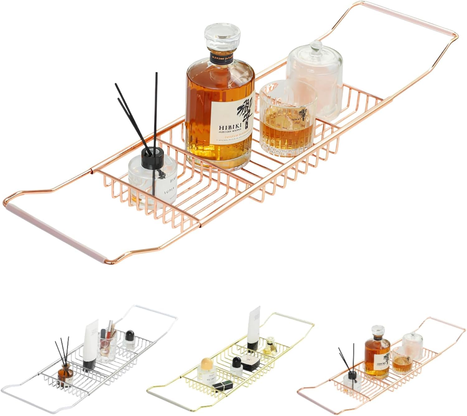 [AOKOWN]バスタブトレー お風呂【格納可能なデザイン62-98cm】ステンレス バスタブスタンド バステーブル 錆びにくい カビない 滑り止め 伸縮式 浴槽ラック 浴室収納 お風呂雑貨置き台