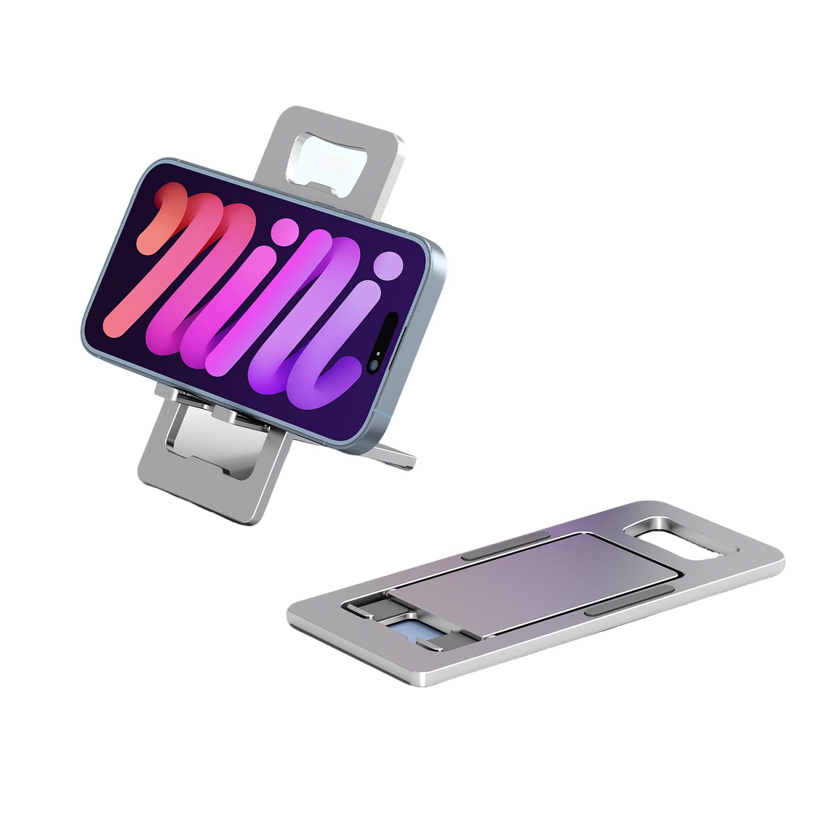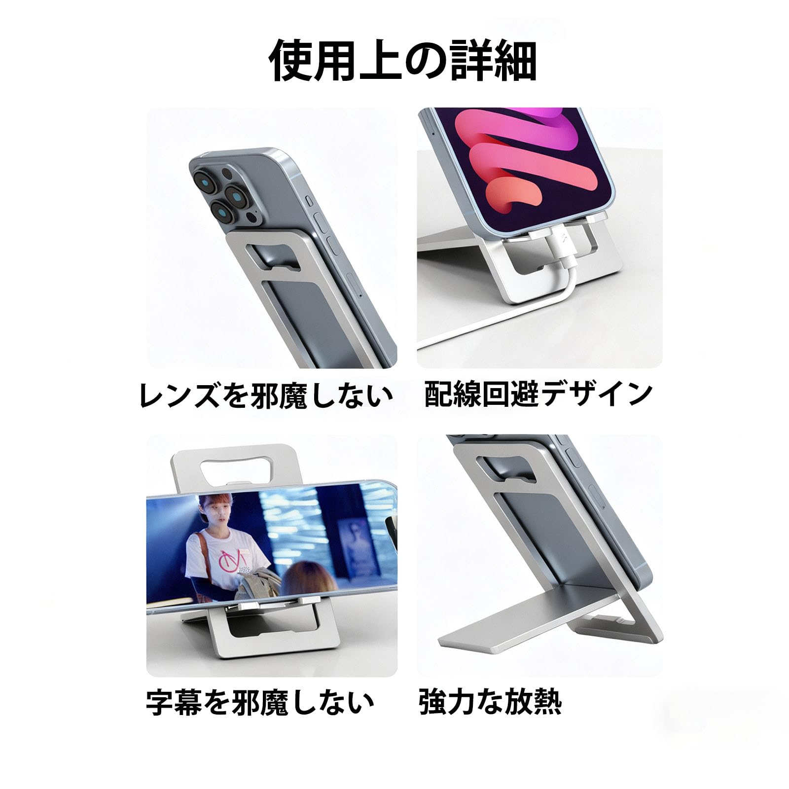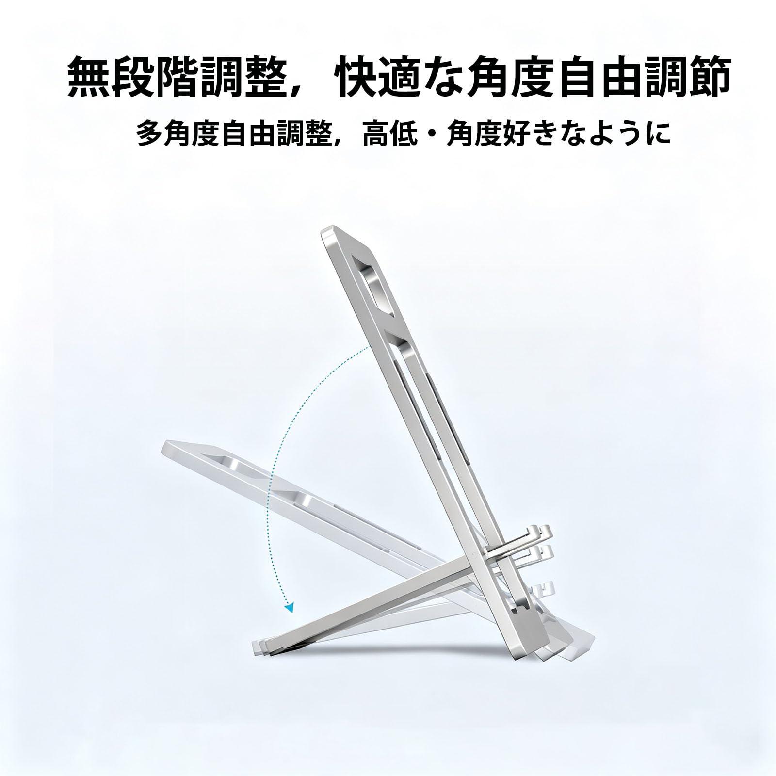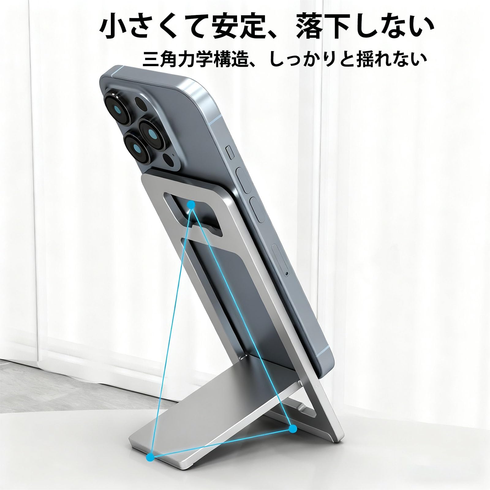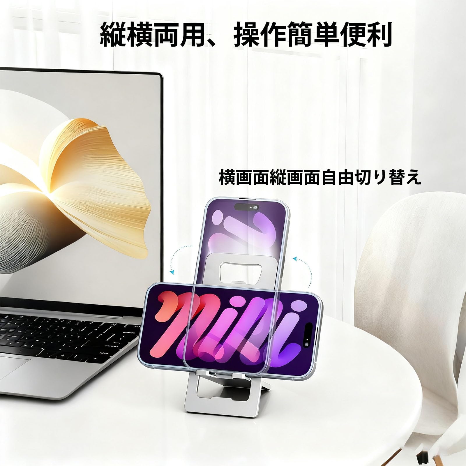 Dopommy スマホスタンド スマホ立て iphoneスタンド 薄型 卓上 アルミ合金製 折り畳み 角度調整 横縦置き台 持ち運び便利 4.7-6.8インチのiPhone Androidのスマホに対応 (シルバー)