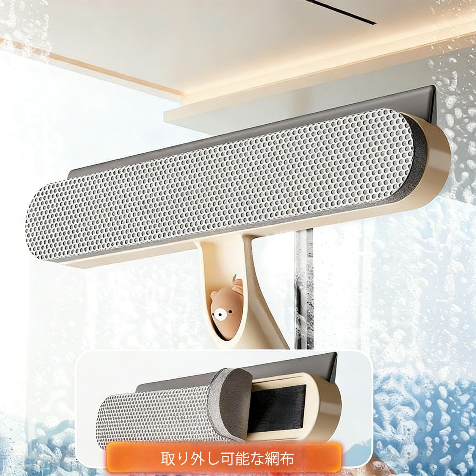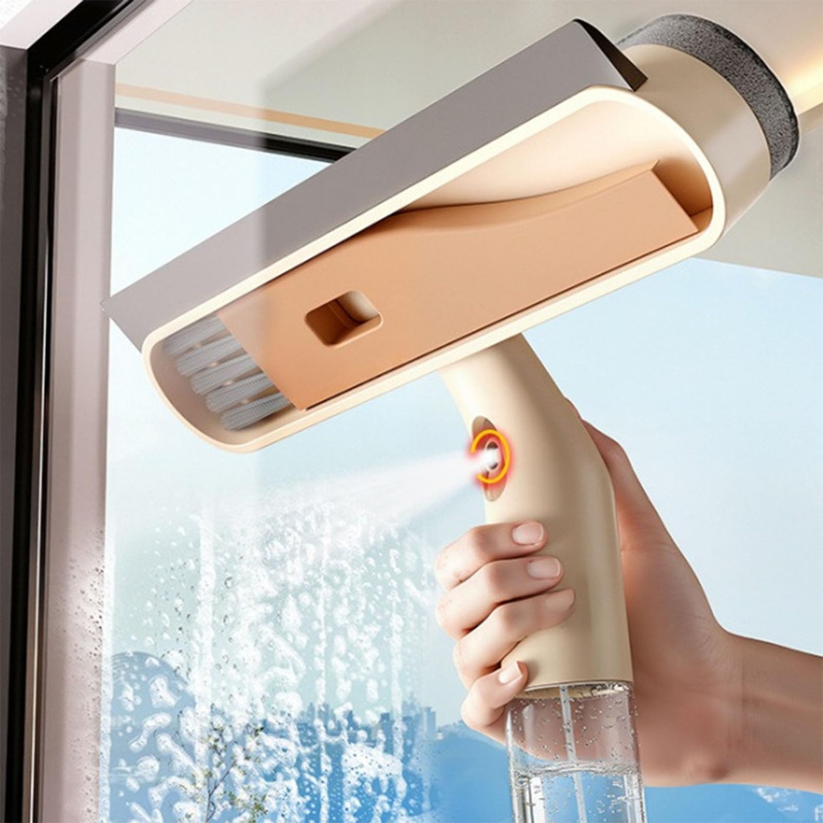 Dopommy スプレーガラスワイパー プロな窓拭きセット これで4役(霧吹き・クロス・水切り・窓枠の隙間掃除) 窓ガラス掃除スクージー 水切りワイパー ガラス掃除用 窓掃除 洗車用 隙間ブラシ付き 収納便利 拭き幅21cm タンク容量150ml (ベージュ)