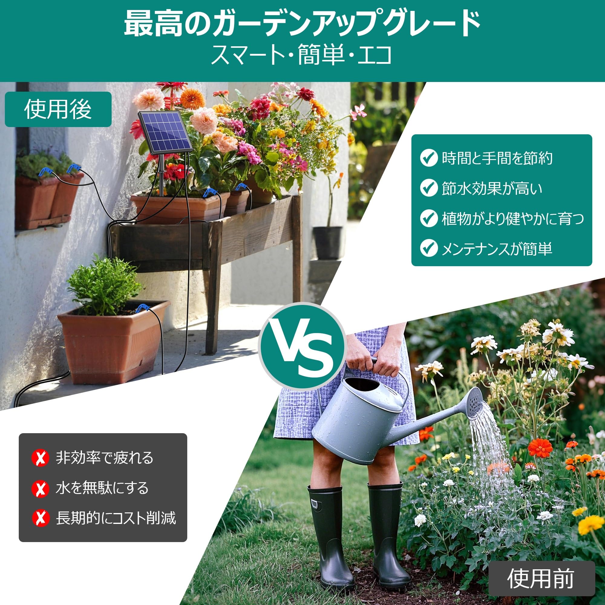 NFESOLAR ソーラー自動散水キット 太陽光で動く、15鉢まで同時に水やり可能な完全ワイヤレス散水システム