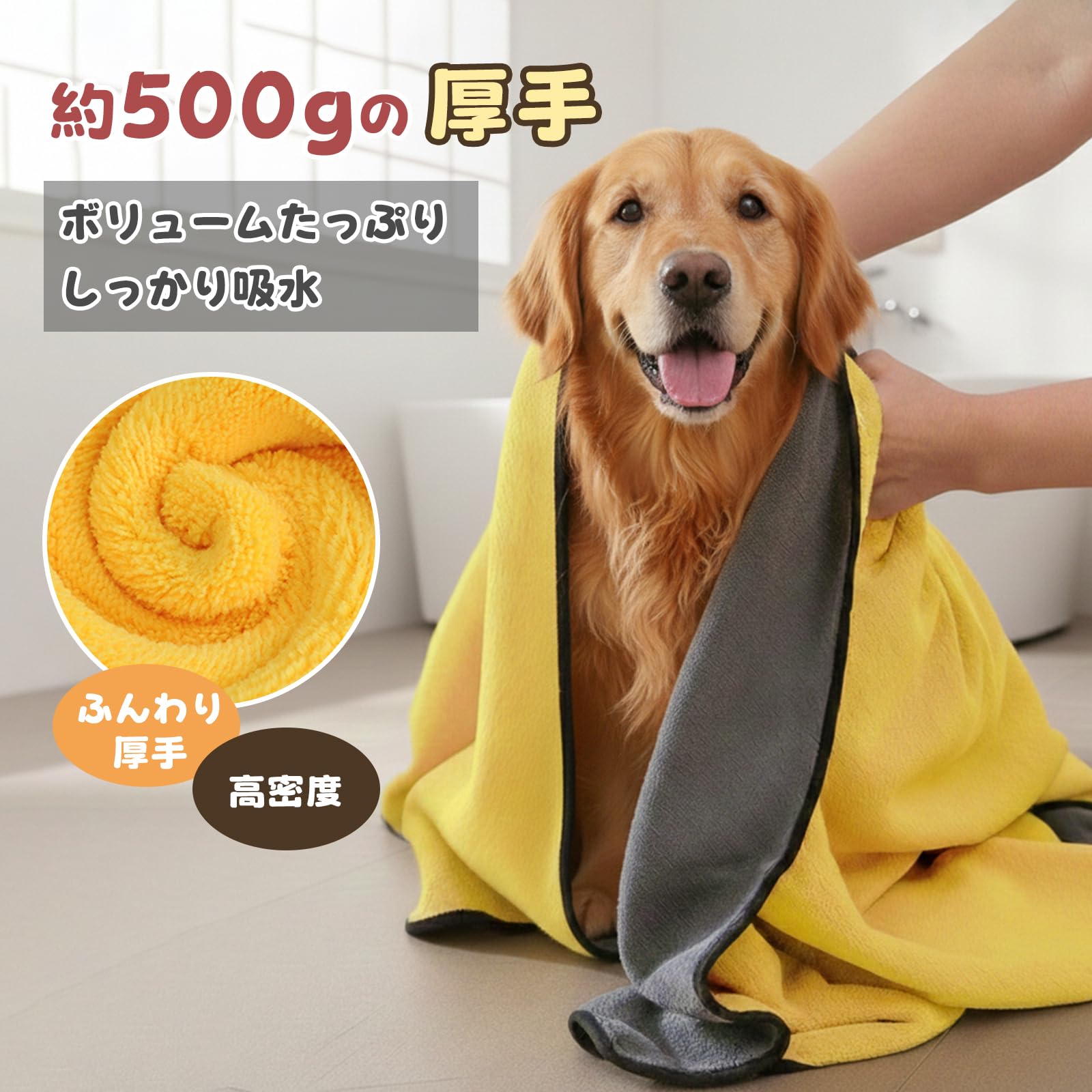 ペット用タオル 超吸水 大判 70×140cm マイクロファイバー 柔らかい 厚手 犬 猫 体拭き用 お風呂上がり 雨の日 散歩後 川遊び対応 1枚(ブルー) [並行輸入品]