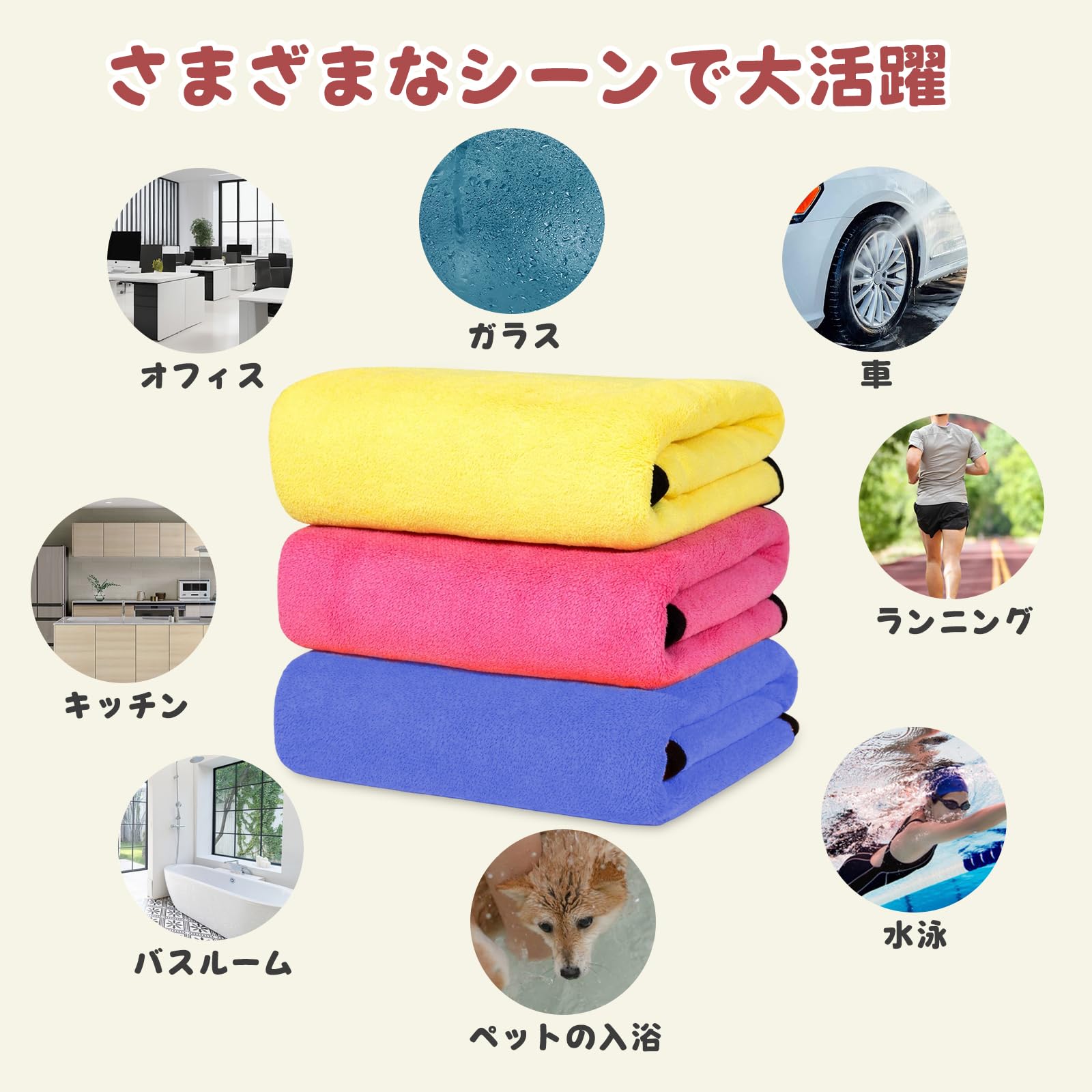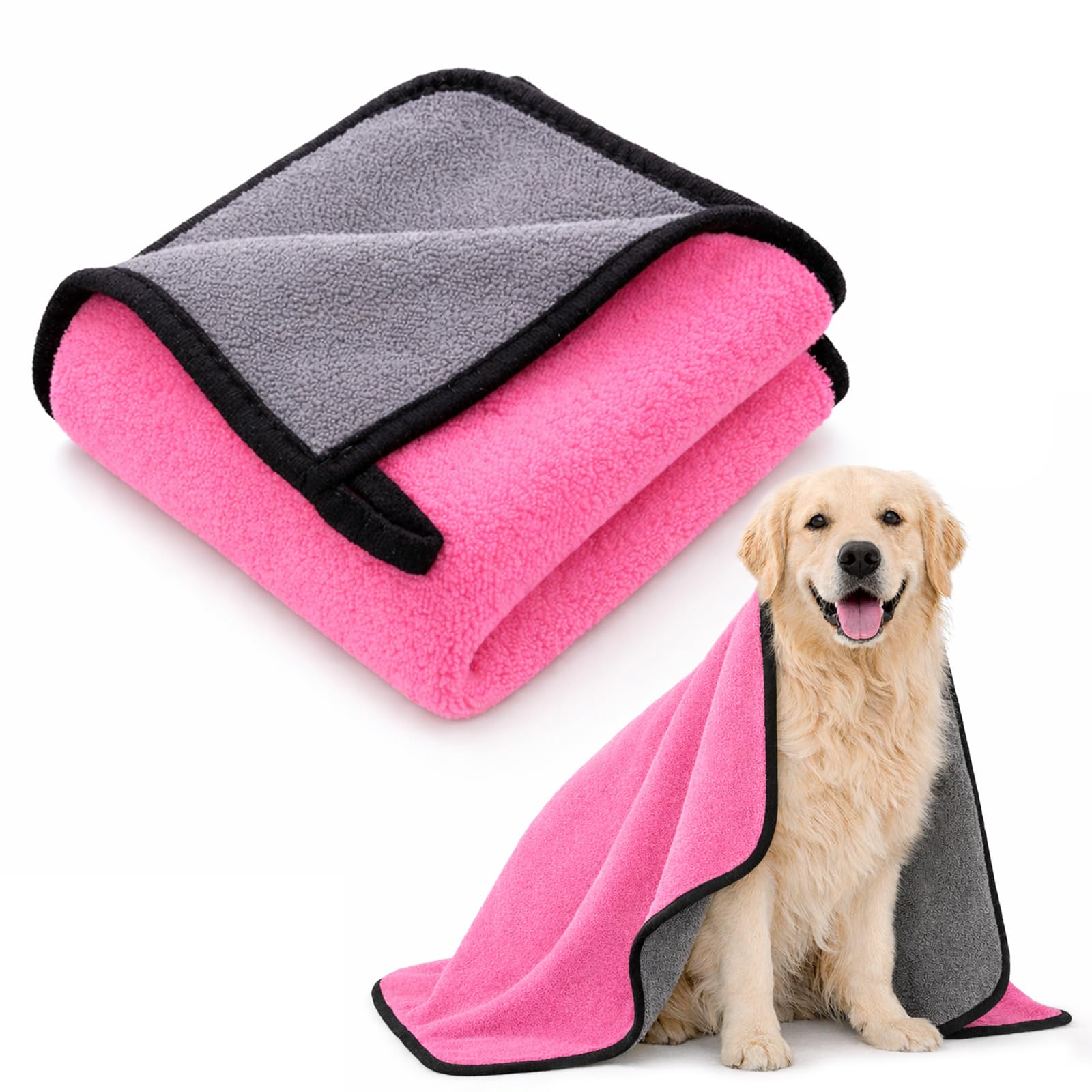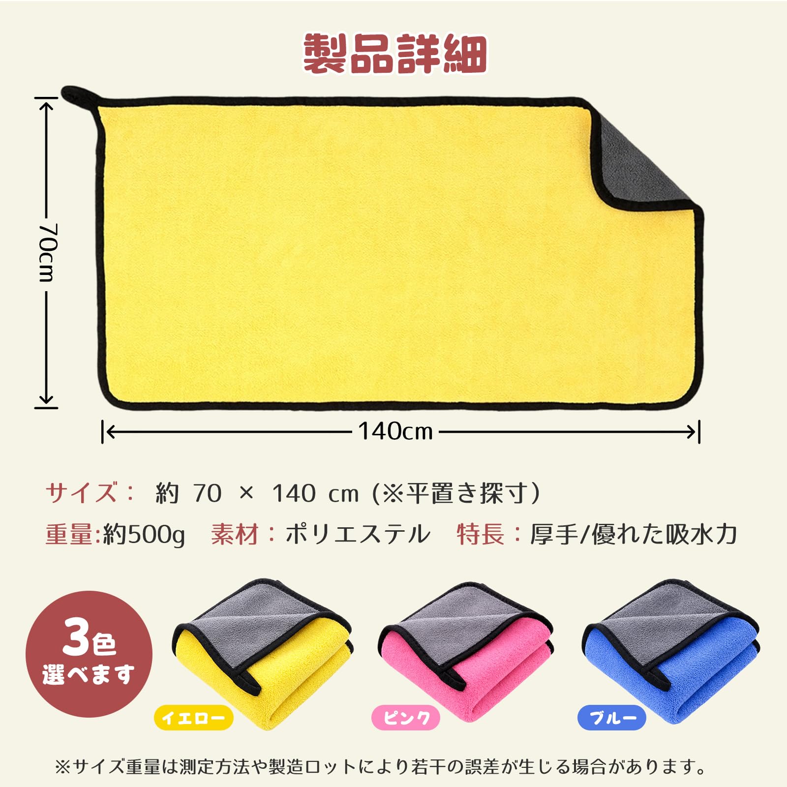 ペット用タオル 超吸水 大判 70×140cm マイクロファイバー 柔らかい 厚手 犬 猫 体拭き用 お風呂上がり 雨の日 散歩後 川遊び対応 1枚(ピンク) [並行輸入品]