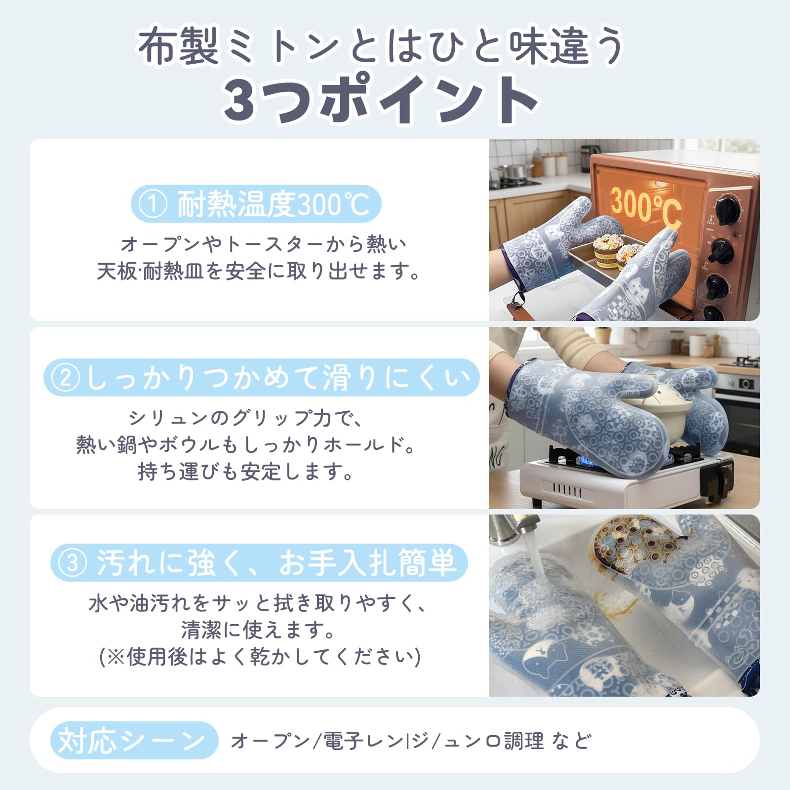 耐熱オーブンミトン シリコン手袋 断熱ミトン KINGTOP 鍋つかみ オーブンミトン 耐熱温度350℃ 耐熱防水 滑り止め 左右兼用 男女兼用 シリコン キッチン/台所/炊事/調理など幅広いにも適用 (両手セット)