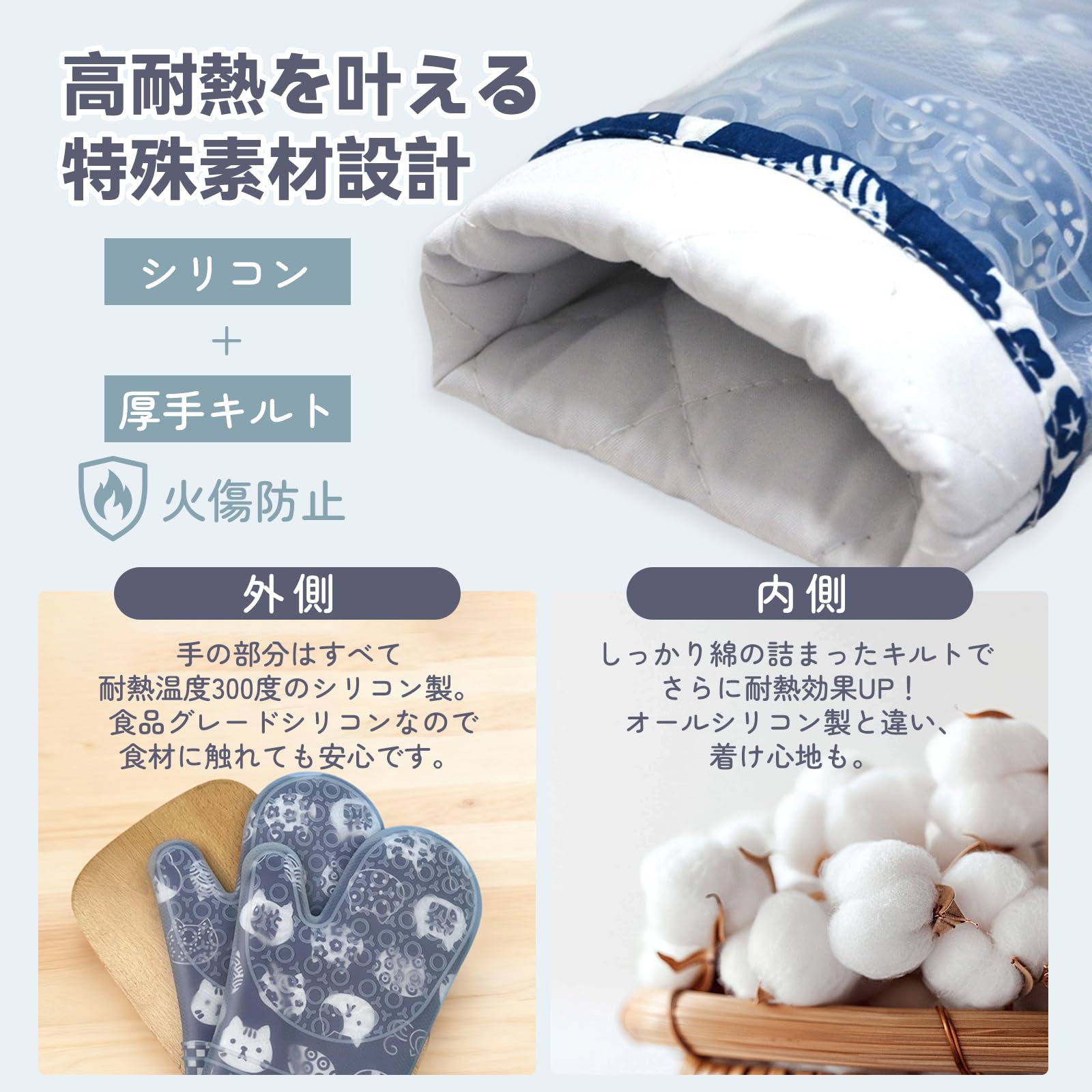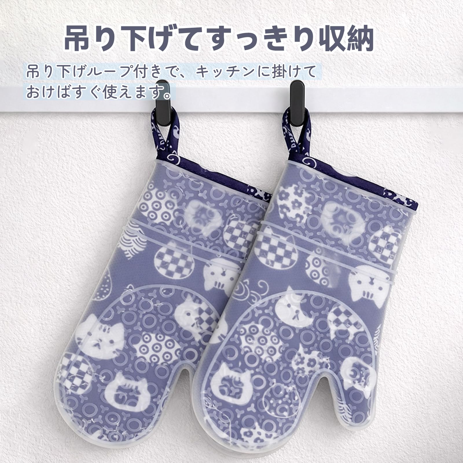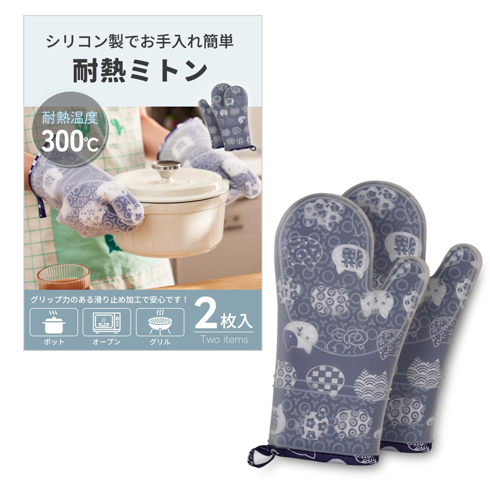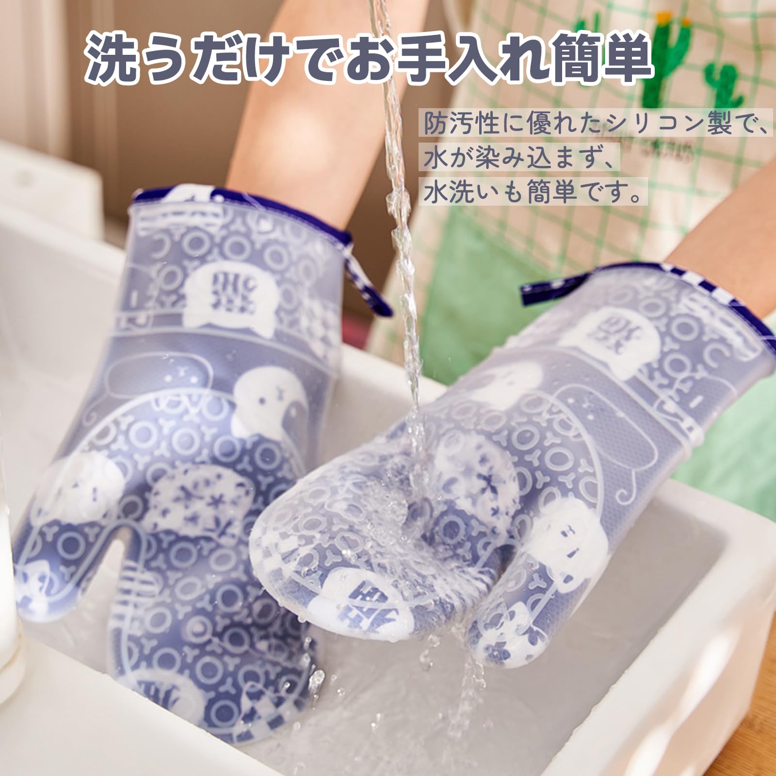 耐熱ミトン 両手セット シリコン製 300℃耐熱 オーブンミトン 滑り止め 防水 厚手 左右兼用 鍋つかみ キッチン手袋 クッキング用 BBQ (ネイビーブルー) [並行輸入品]