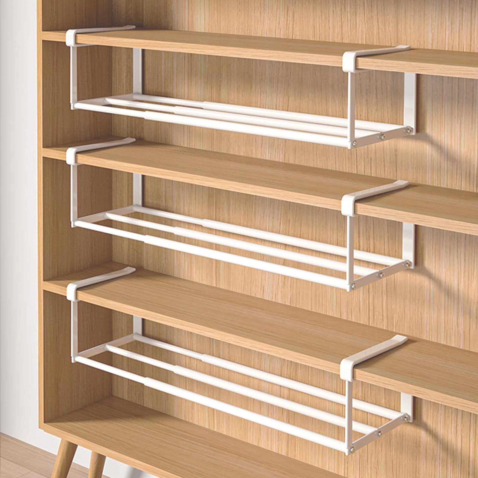 SKW シューズラック 伸縮式 玄関収納 靴棚 吊り下げ式 下駄箱 靴箱 組み立て式 組み立て簡単 工具付き 玄関 下駄箱 省スペース 調整可能 多機能 (3, ホワイト)