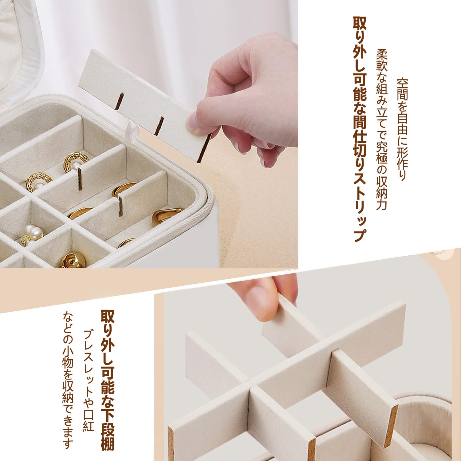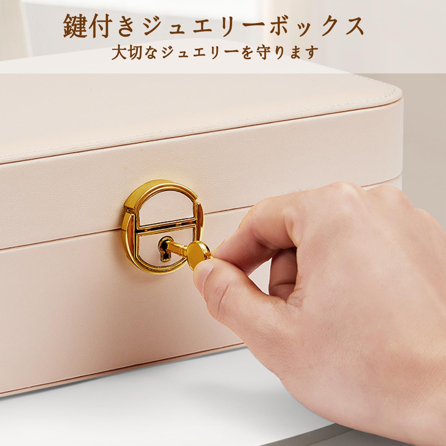 Vinnatsu ジュエリーボックス アクセサリーケースPUレザージュエリーケース 軽量 鍵付き 宝石箱 ジュエリー収納 鍵付き アクセサリー 収納 ボックス アクセサリー収納 ビーズ収納 オーガナイザー 分割 取り外し可 小物入れ 着脱式の仕切り付き 女の子 女性用 (クリームホワイト)