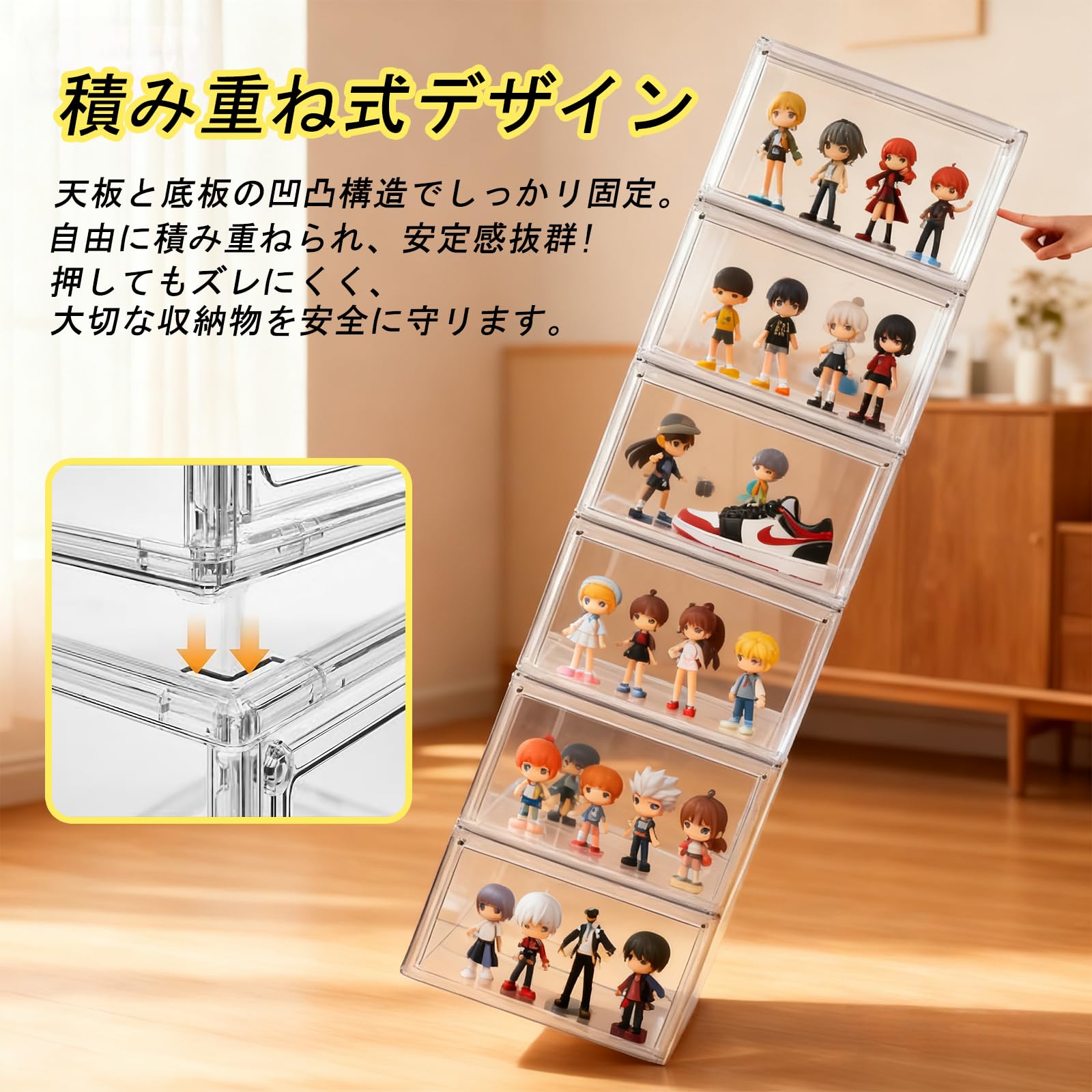 Duvinin フィギュアケース アクリルケース ディスプレイケース コレクションケース マグネット式扉 積み重ね可能 組み立て式 三層ステージ 透明