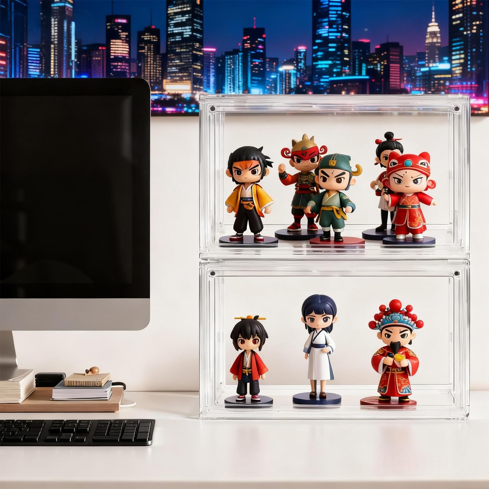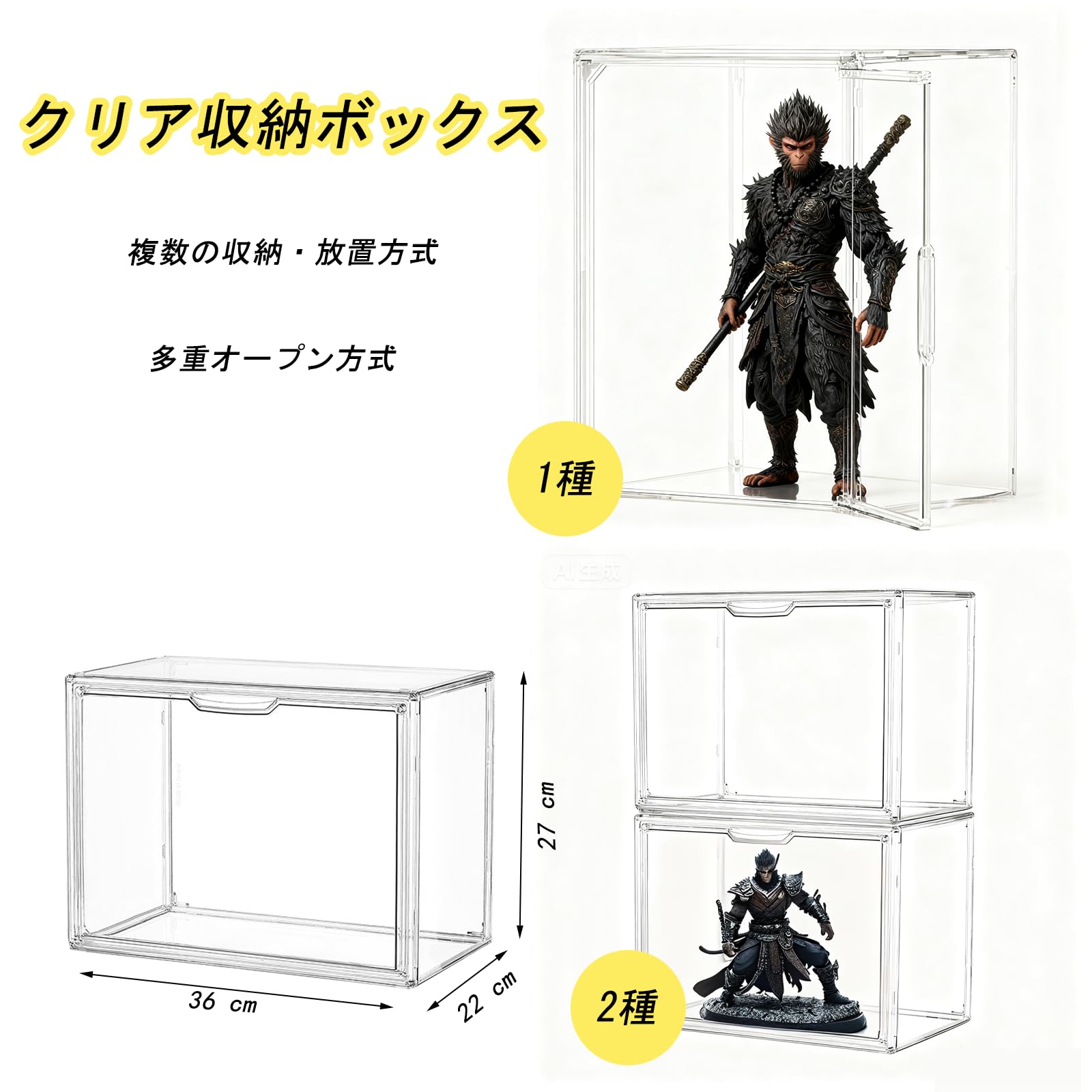 QIYUNI 2つのフィギュアケースセットプラスチック透明磁石リング式前開き式重ね置き可能防塵UV保護卓上ショーケース約36cm(幅)×27cm)深さ)×22cm)高さ)収納用