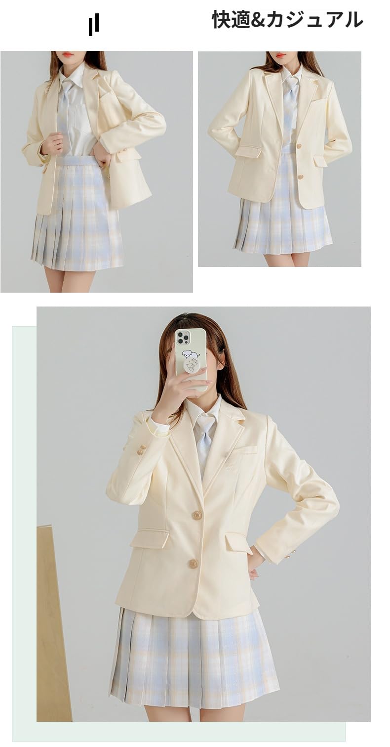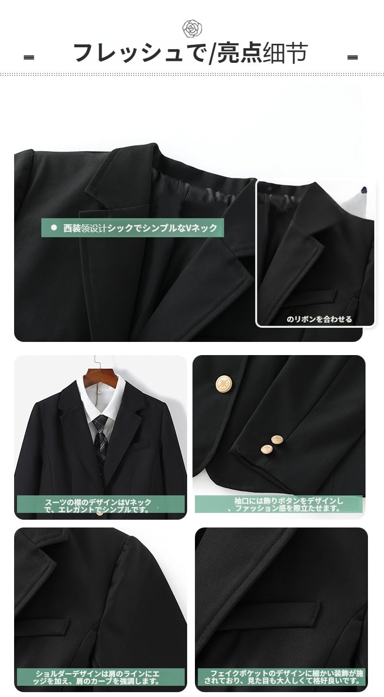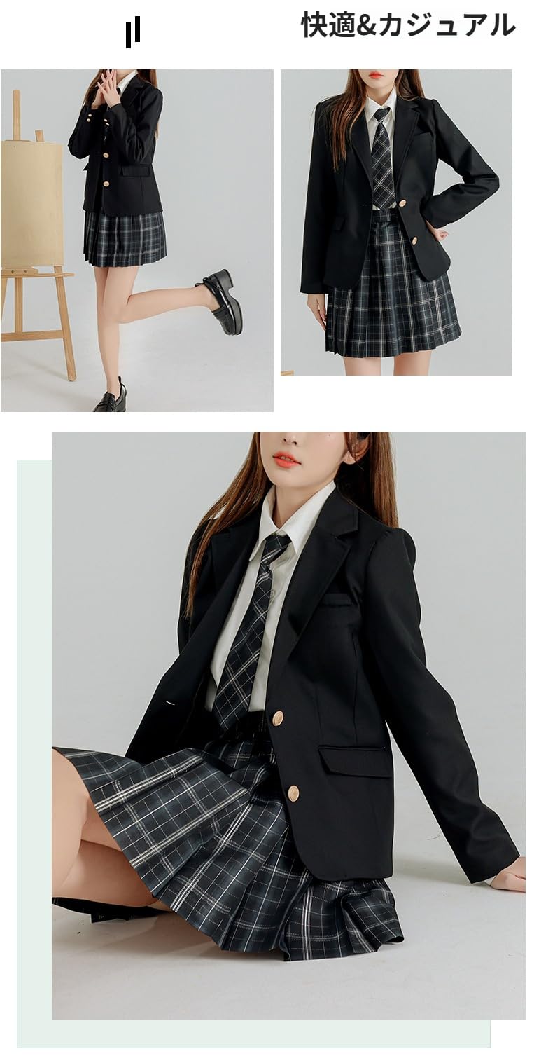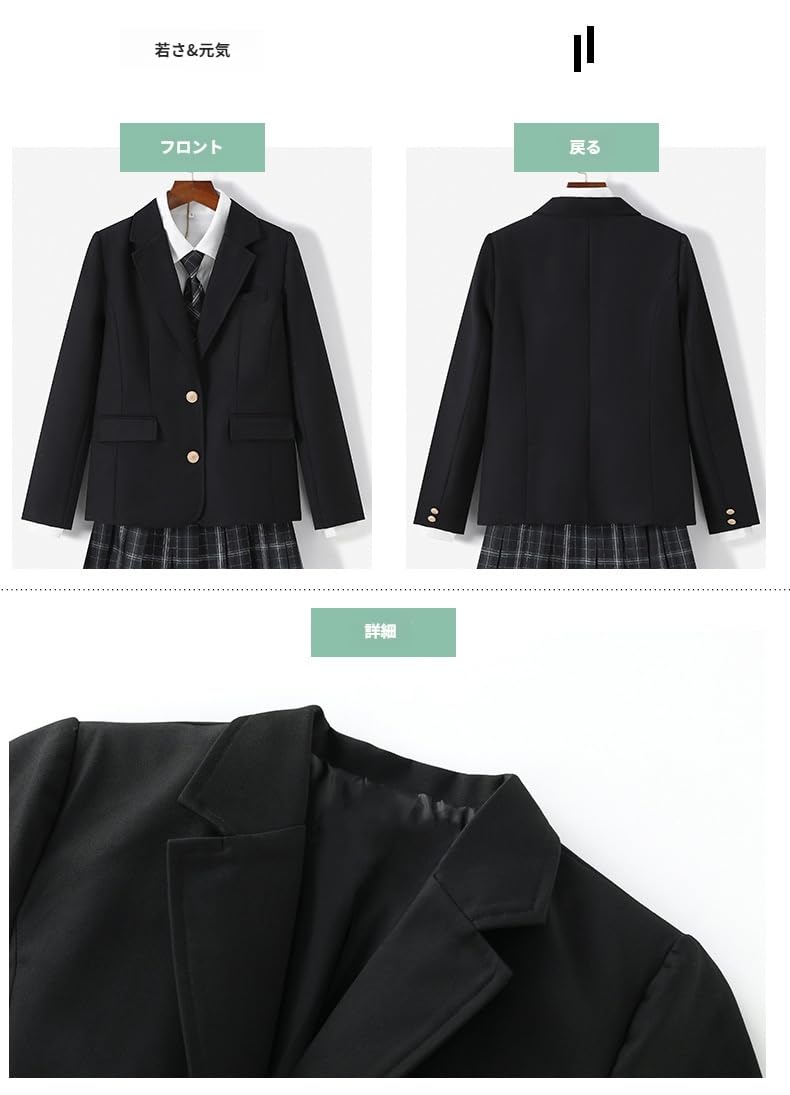 [AOKOWN] スクールブレザー 女子 制服 ブレザー【新しい】 女子高校生 ネイビー 学生服 jk なんちゃって制服 婦人服 入学式 女の子 可愛い ボタン ジャケット 上着 高校生 学園風 文化祭 パーティ(ブレ ザーのみとバッジ)