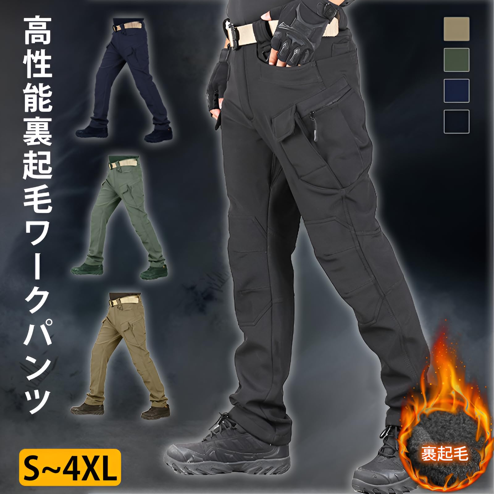 [JUELREOU] メンズトレッキングパンツ【高性能裏起毛 防水撥水】 ワークパンツ 防寒 冬用 耐久性 コンバットカーゴパンツ 迷彩 ストレッチ 登山・アウトドア用 快適な履き心地 冬