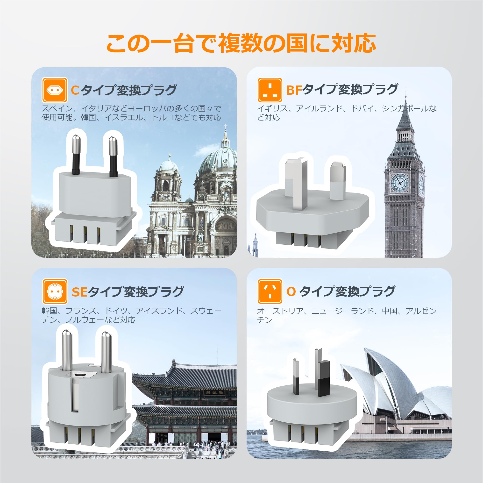 海外 変換プラグ TESSAN C/BF/O/SEタイプ 旅行 便利グッズ コンセント 変換 取り外し可能 マルチ変換プラグ 6台同時充電 3個AC差込口 1つUSB-Cと2つUSB-Aポート付き 韓国 香港 タイ ベトナム ヨーロッパ オーストラリア ドイツ イギリス マレーシア シンガポールなどの国に対応 出張に便利