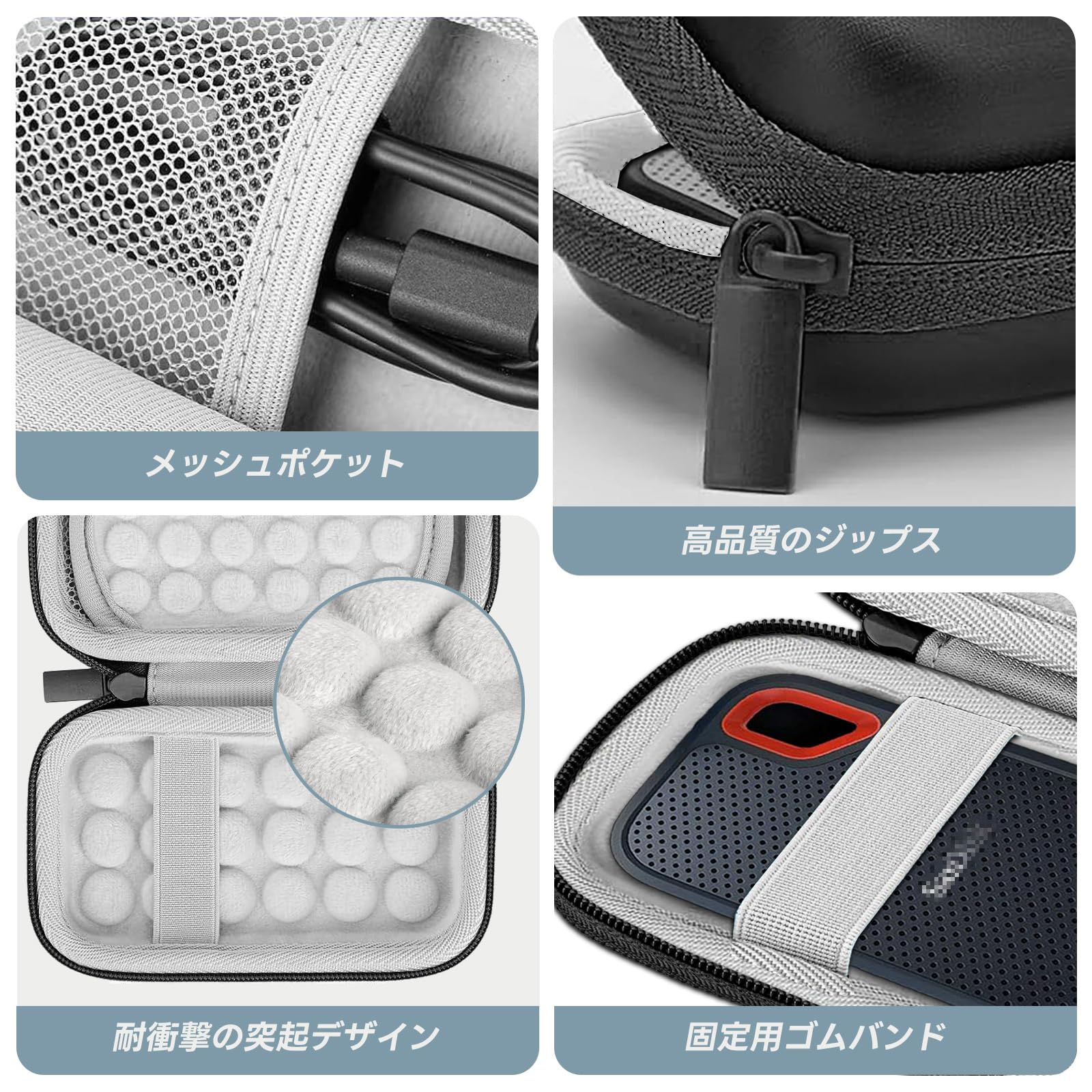 サンディスクポータブルケース SanDisk/SanDiskポータブルSSD Portable Extreme PRO外付に対応 EVA外装 防震 防塵 防衝撃 耐水 (グレー)