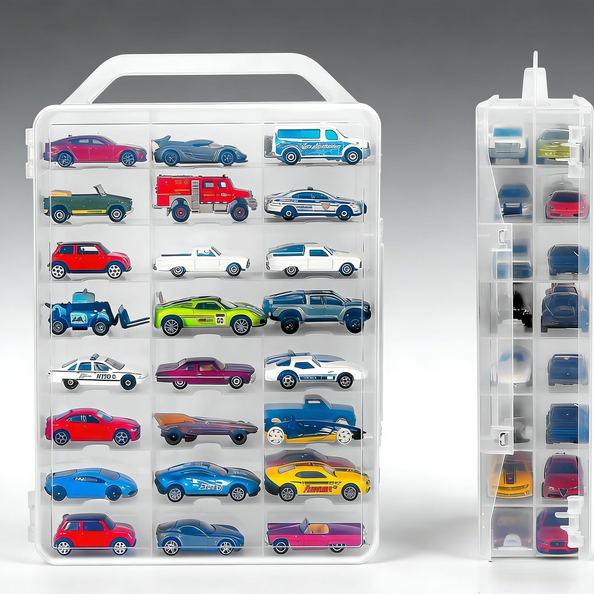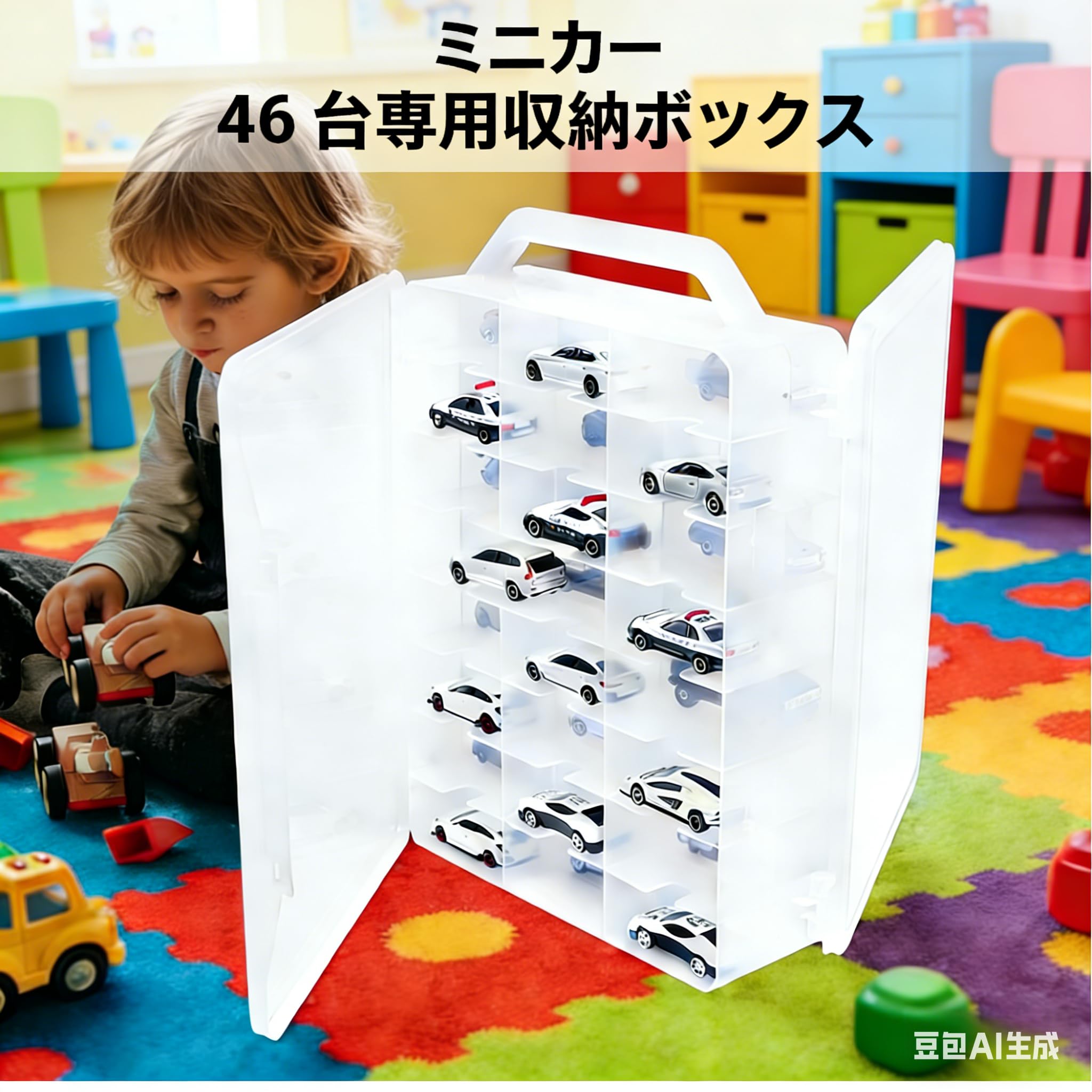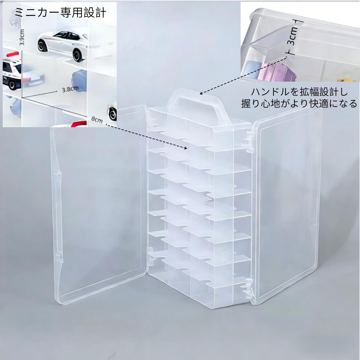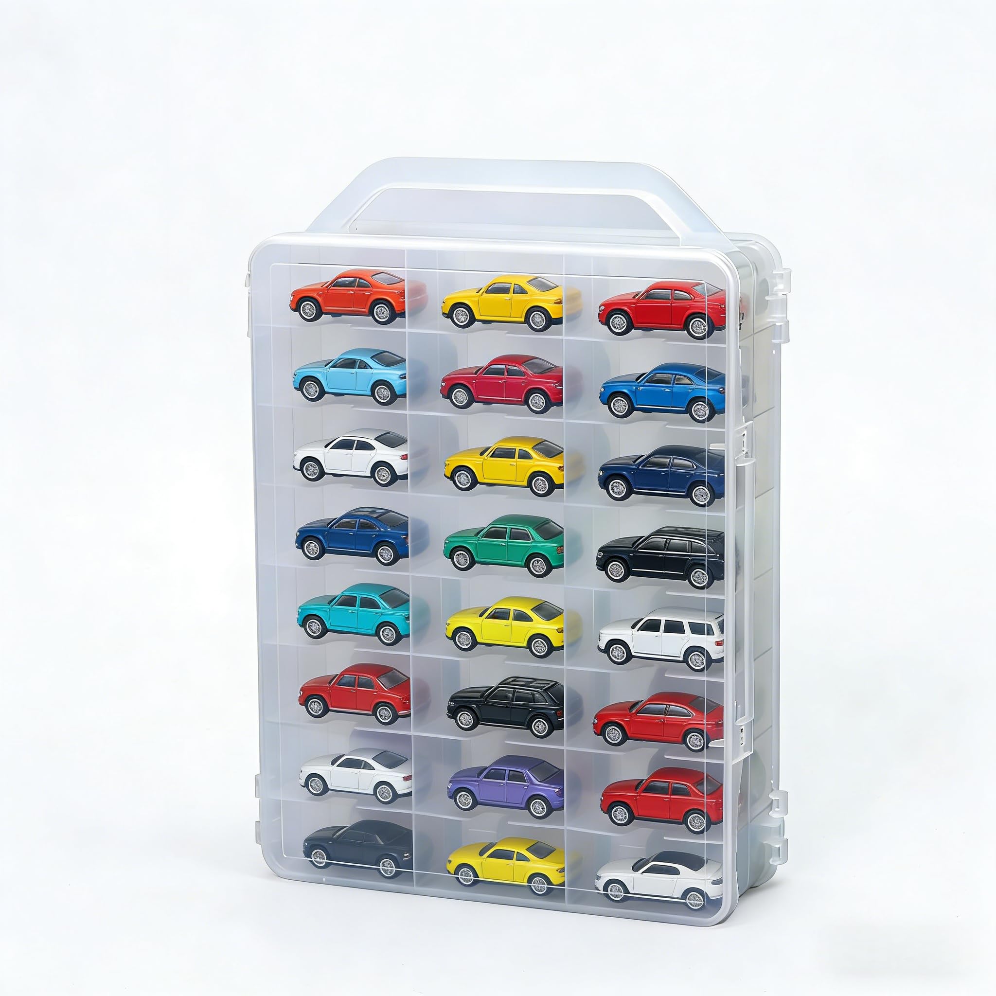 Haozai ミニカー収納ケース おもちゃ整理ボックス ハンドル付き 両面収納 最大 46 台収納可能1:64 サイズのミニカー対応 持ち運び便利 キッズルームの必需品(儿童房必备) ギフトにも最適