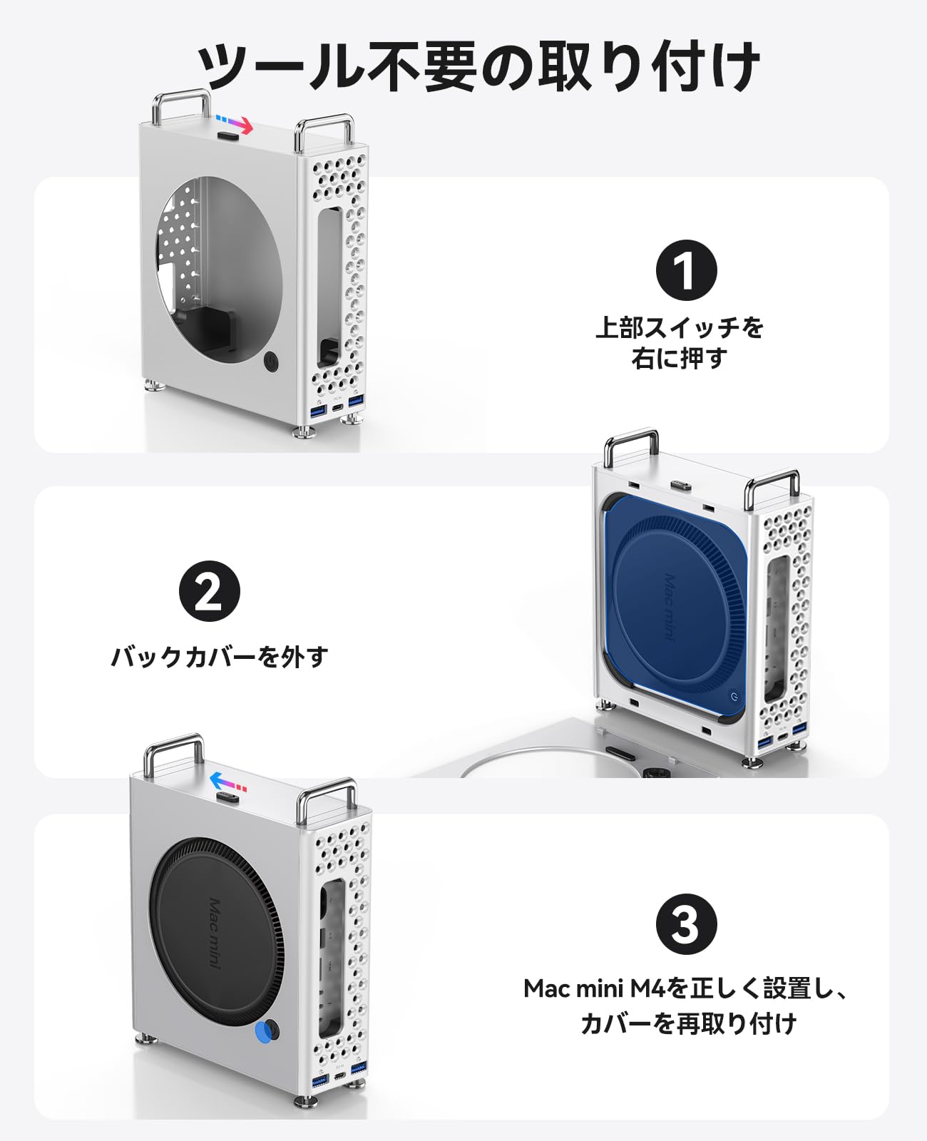ORICO MiniPro Mac mini M4 用 アルミスタンド、ソフトシリコン内装のシャーシドック、工具不要の簡単インストール、Mac mini M4/M4 Pro 用アクセサリー(MS10)