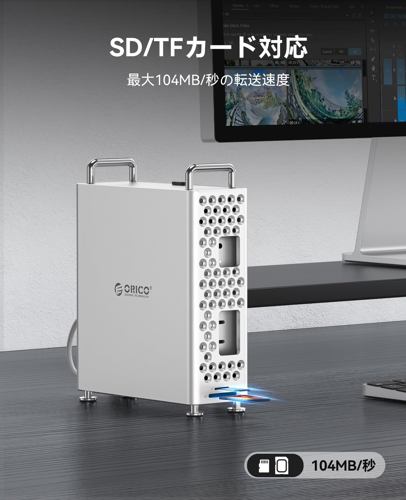 ORICO Mini Proスタンド 5-IN-1 USB-Cハブ 10Gbps内蔵高速転送SSD 512GB NVMe M.2 Type 2280、内蔵ソフトシリコンライナー、工具不要設置(MS10-512G)