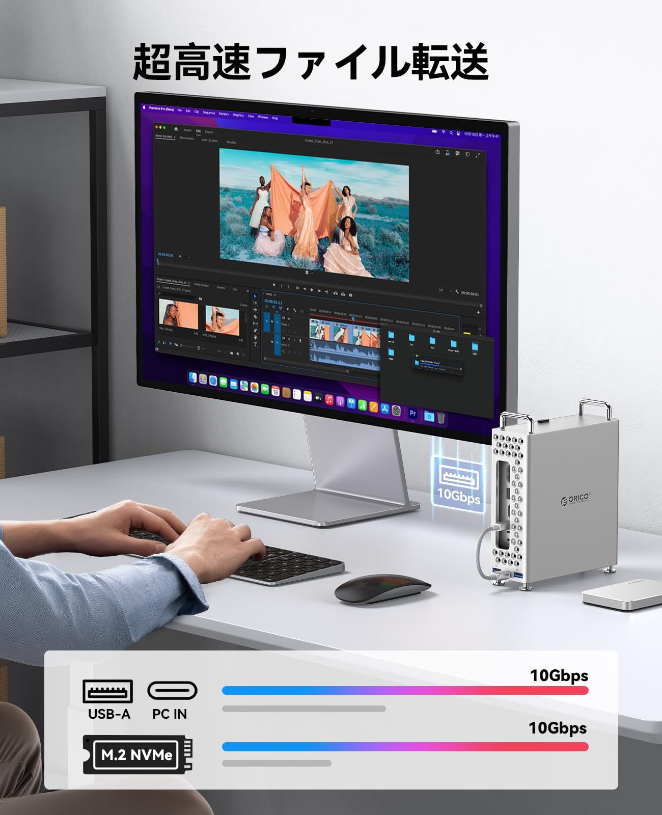 ORICO Mini Pro用スタンド ドック 5-IN-1 USB-Cハブ 10Gbps高速転送 内蔵 SSD 512GB NVMe M.2 Type 2280