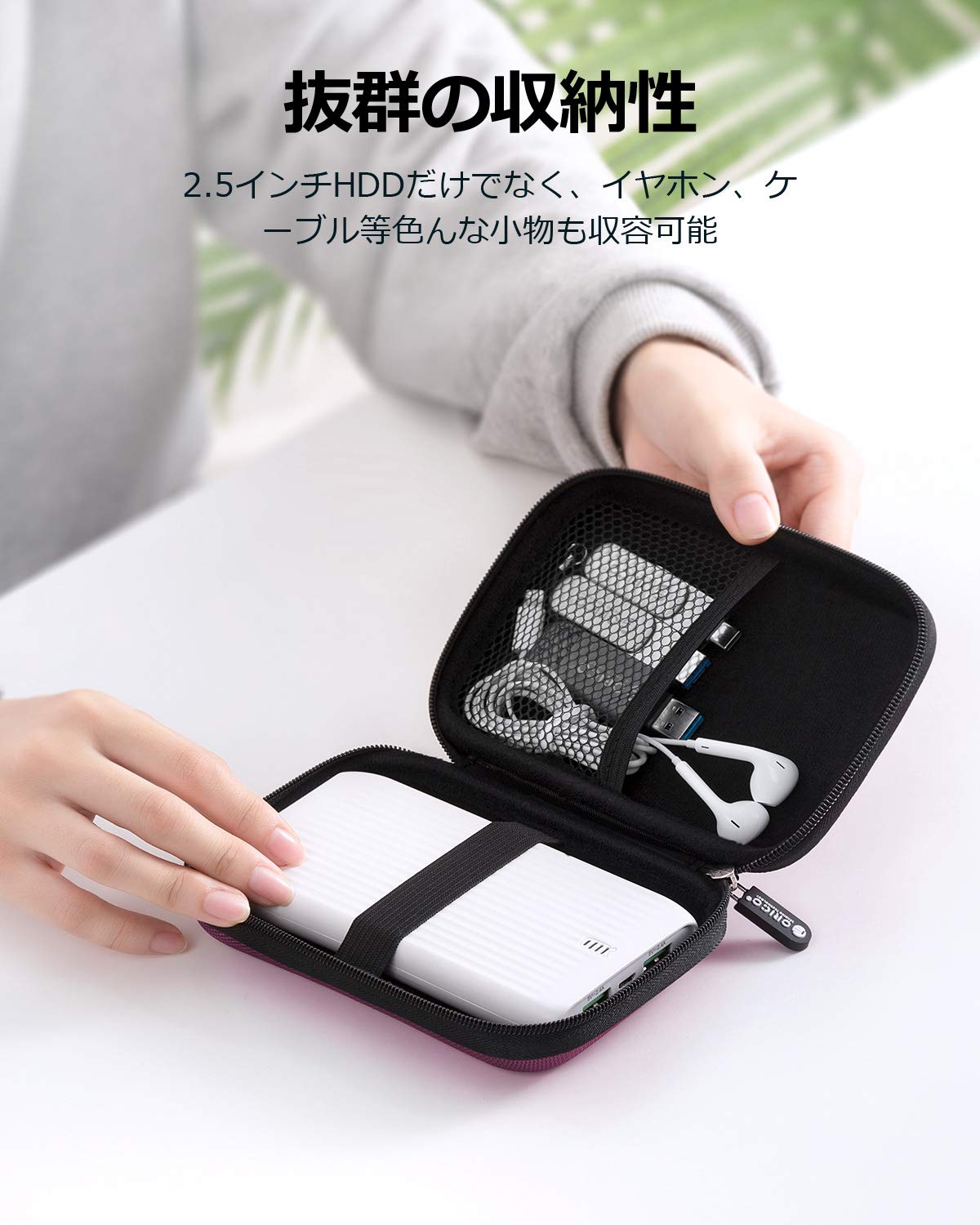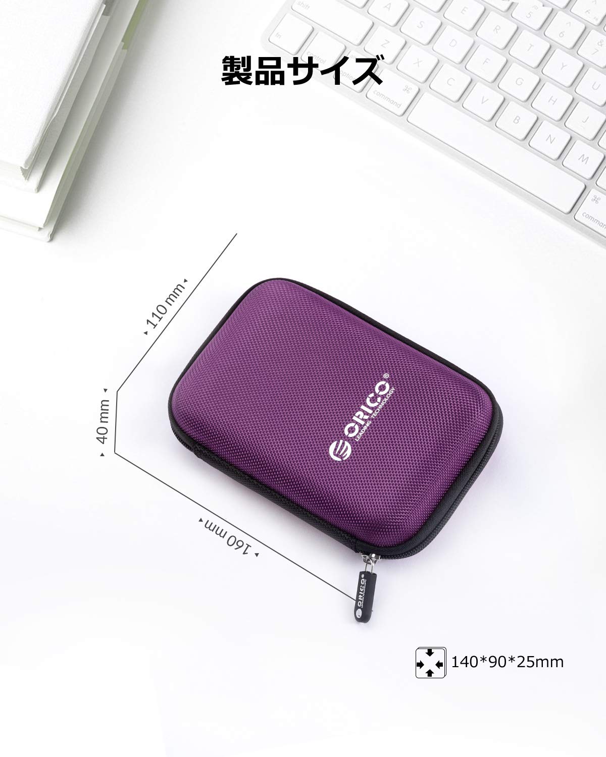 ORICO 2.5インチ ハードディスク 収納 ケース ポータブル HDD 保護ケース SSD本体/ケーブル 小物収納 擦り傷防止 防塵 耐衝撃 2.5型 SSD 収容 ケース パープル PHD-25