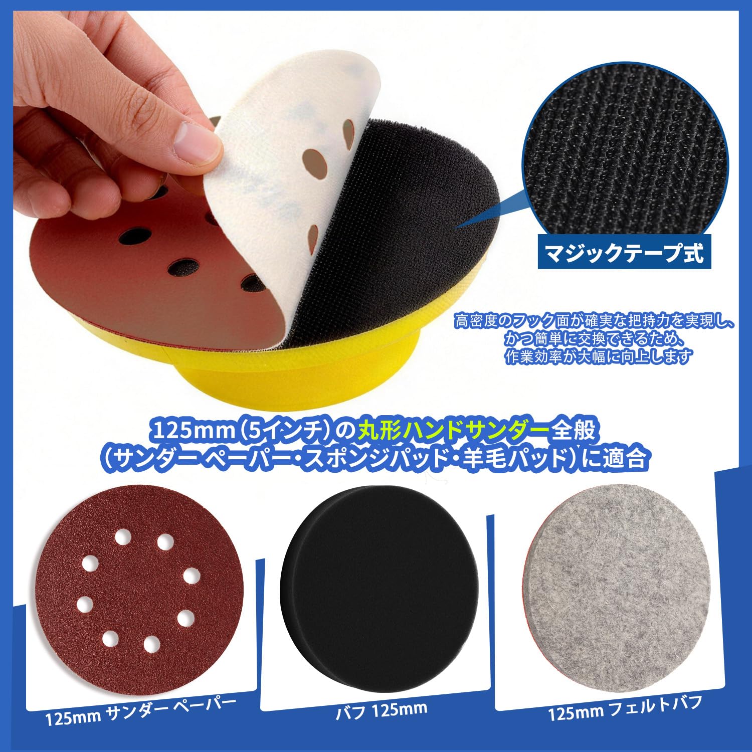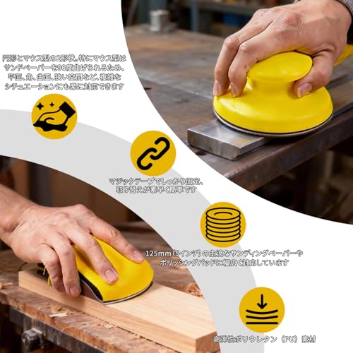 STEBRUAM ハンドサンドパッド 2枚 マウスサンドペーパー マジックテープ式 ハンドサンディング 丸型 125mm サンドペーパー 対応 パテ研ぎ 車 木材 塗装 板金 研磨 清掃 仕上げ