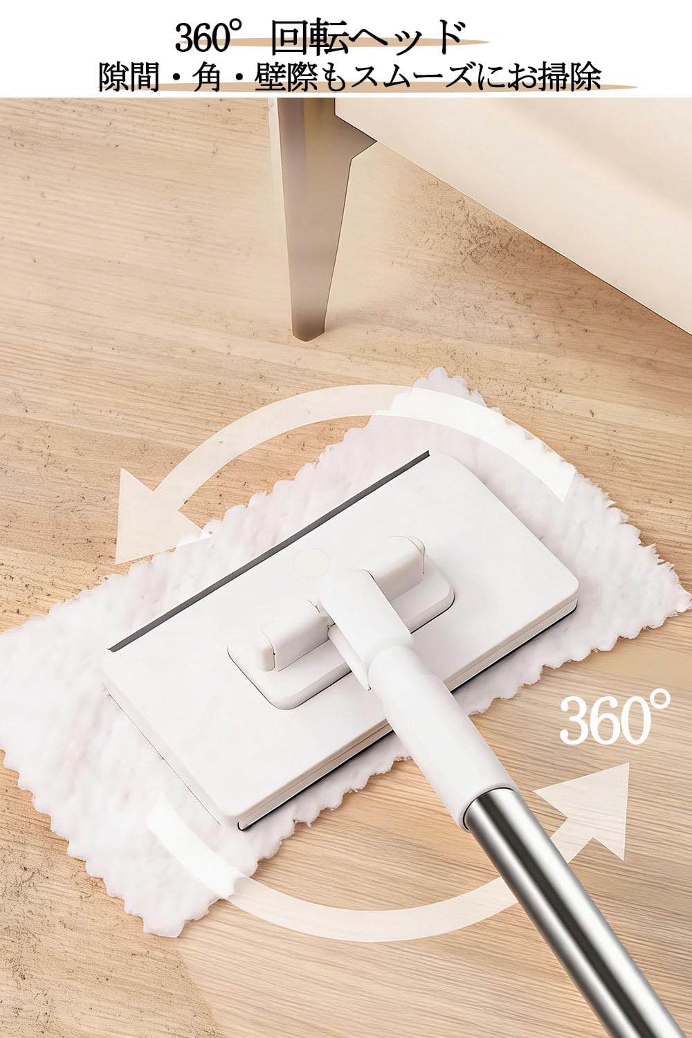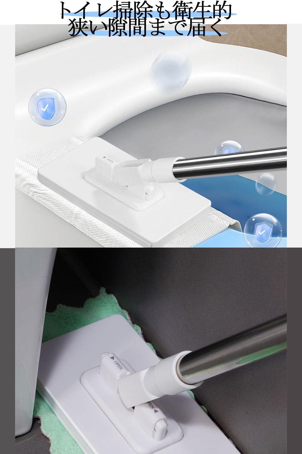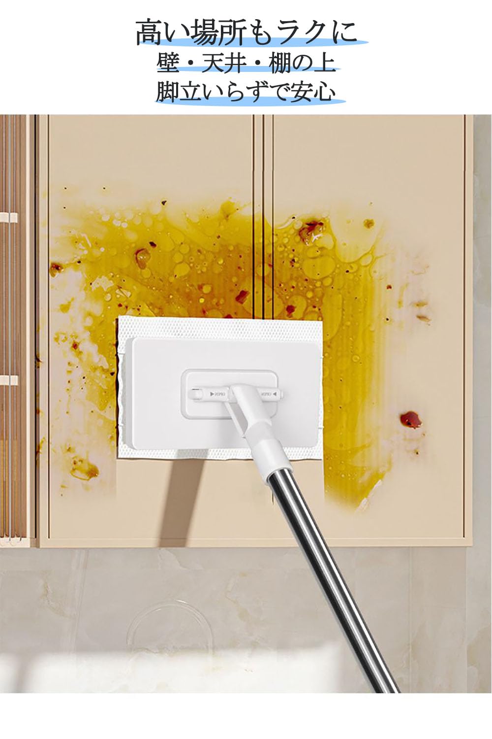 JetWave モップ 乾湿両用 ワンタッチ式 自動雑巾挟み 3段伸縮ポール 長さ調節可 ベランダ 玄関 床 フローリング対応 掃除道具