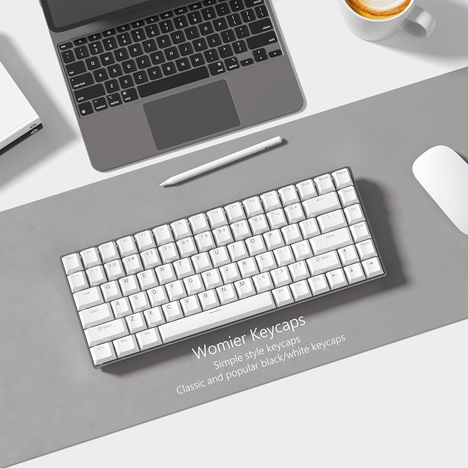 Womier キーキャップ ジェリー - セラミックキーキャップスタイル、クリアホワイトキーキャップ、透明サイドプリントカスタム 60%, 65%, 75%, 100% 用 Cherry MX、Outemu、Gateron メカニカルキーボード(MDA プロファイル)