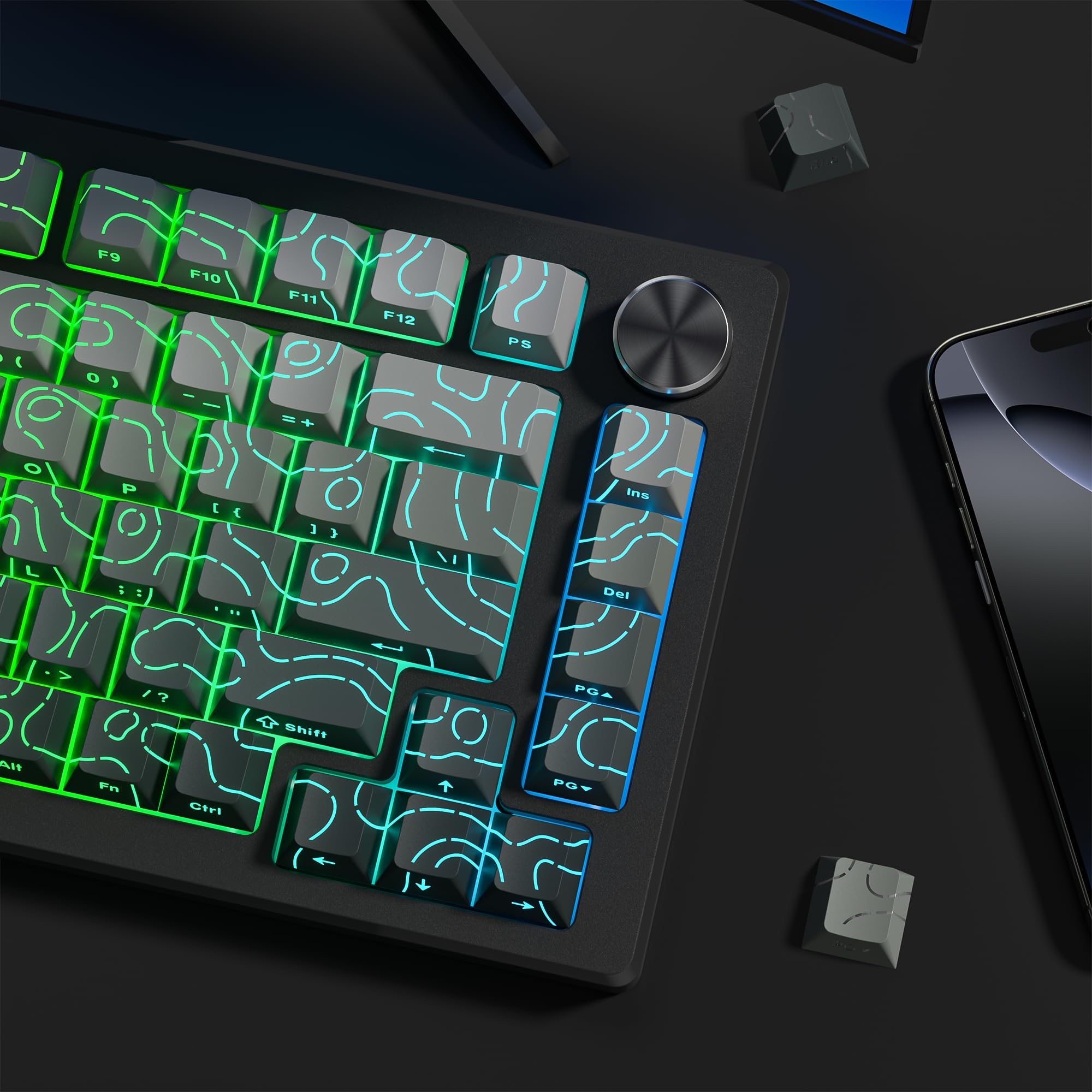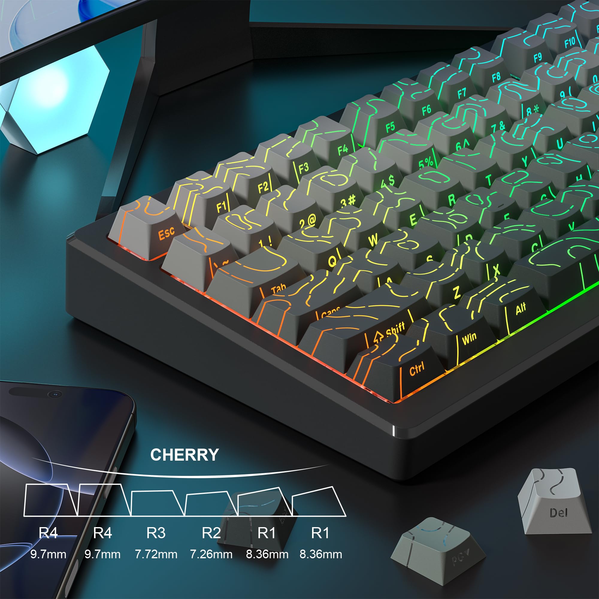 Womier キーキャップ 98キー 等高線4.0 ダブルショット PBT 光透過 キーキャップ サイド彫刻 Cherry プロファイル MX メカニカルキーボード用 Cherryキーキャップ