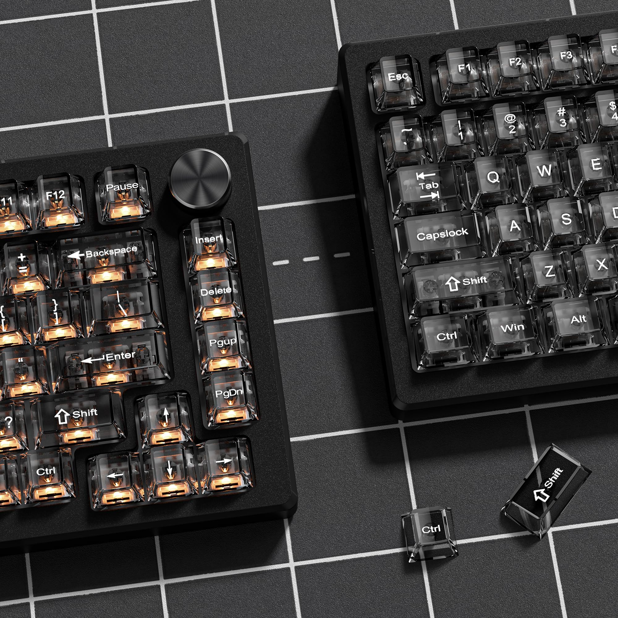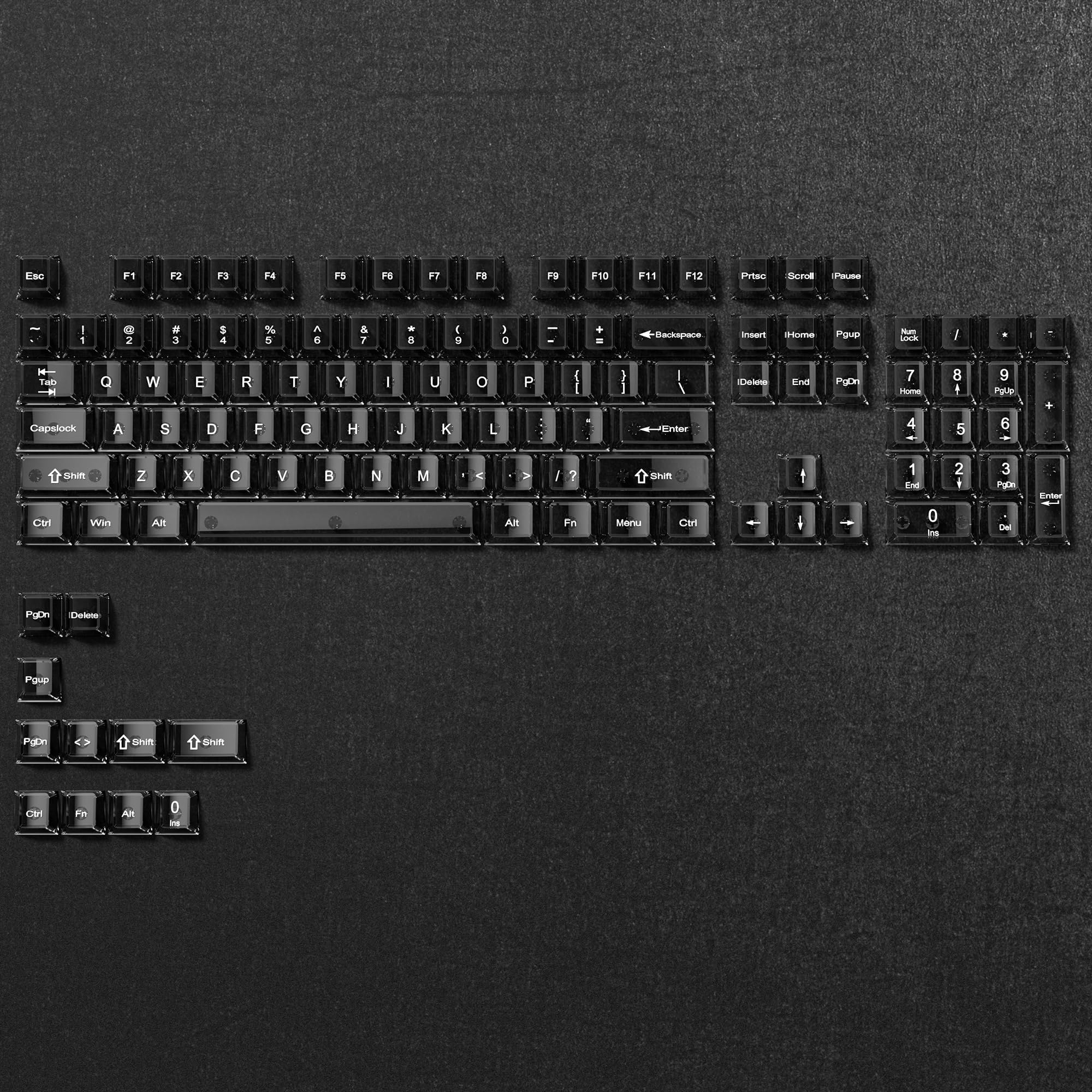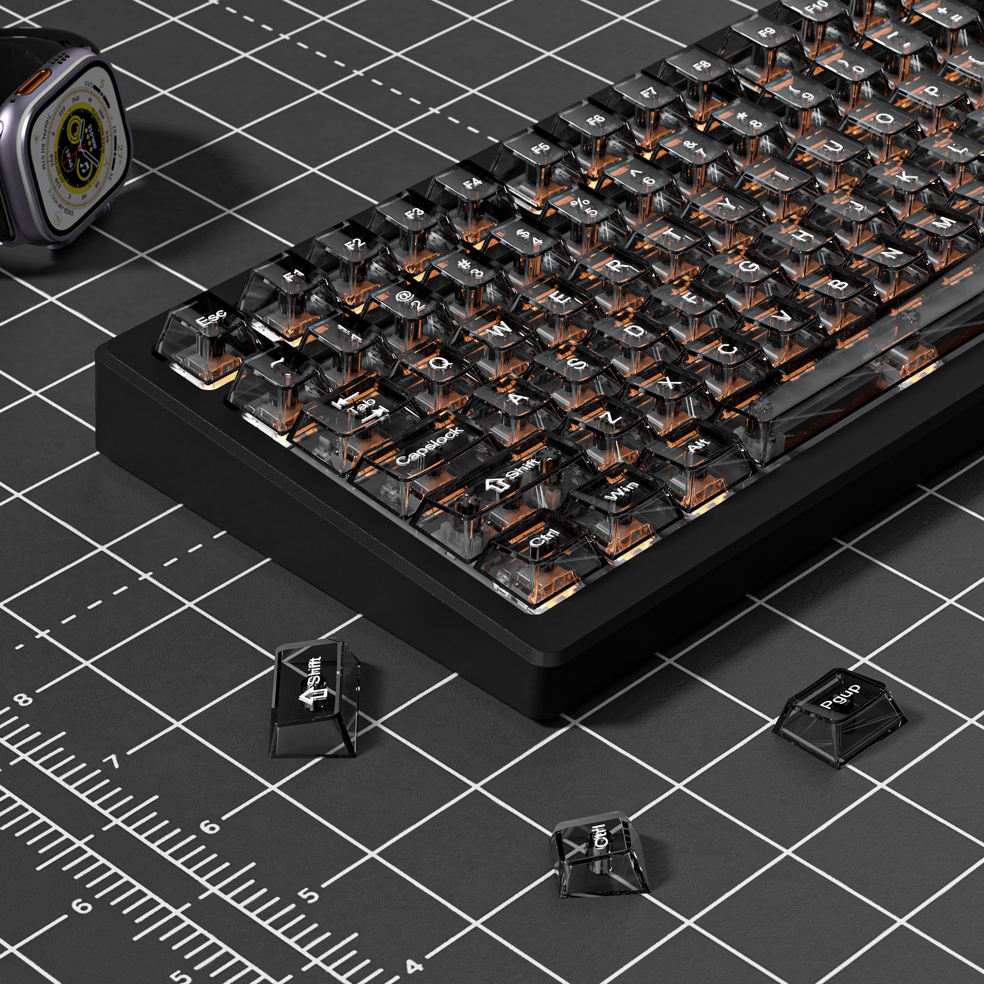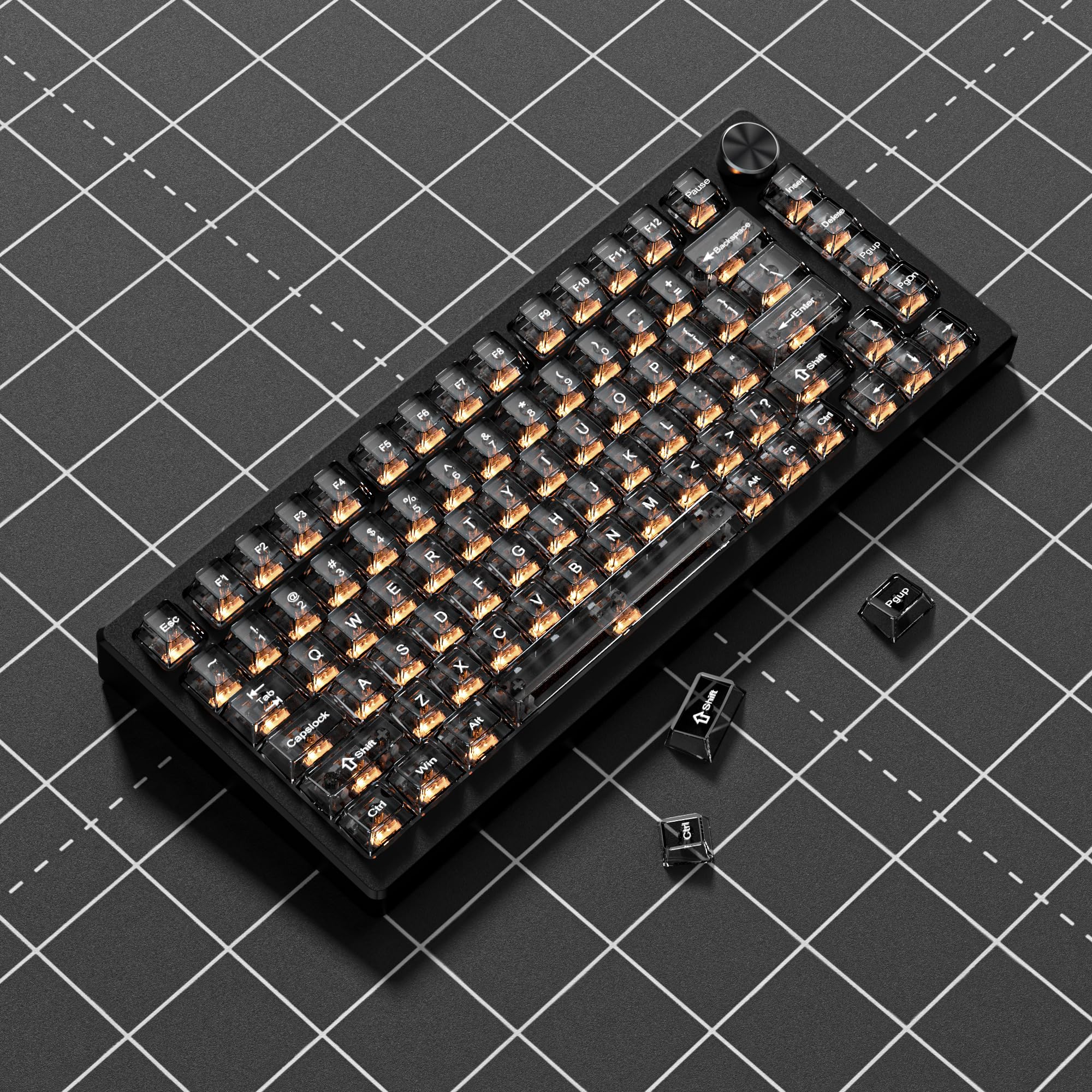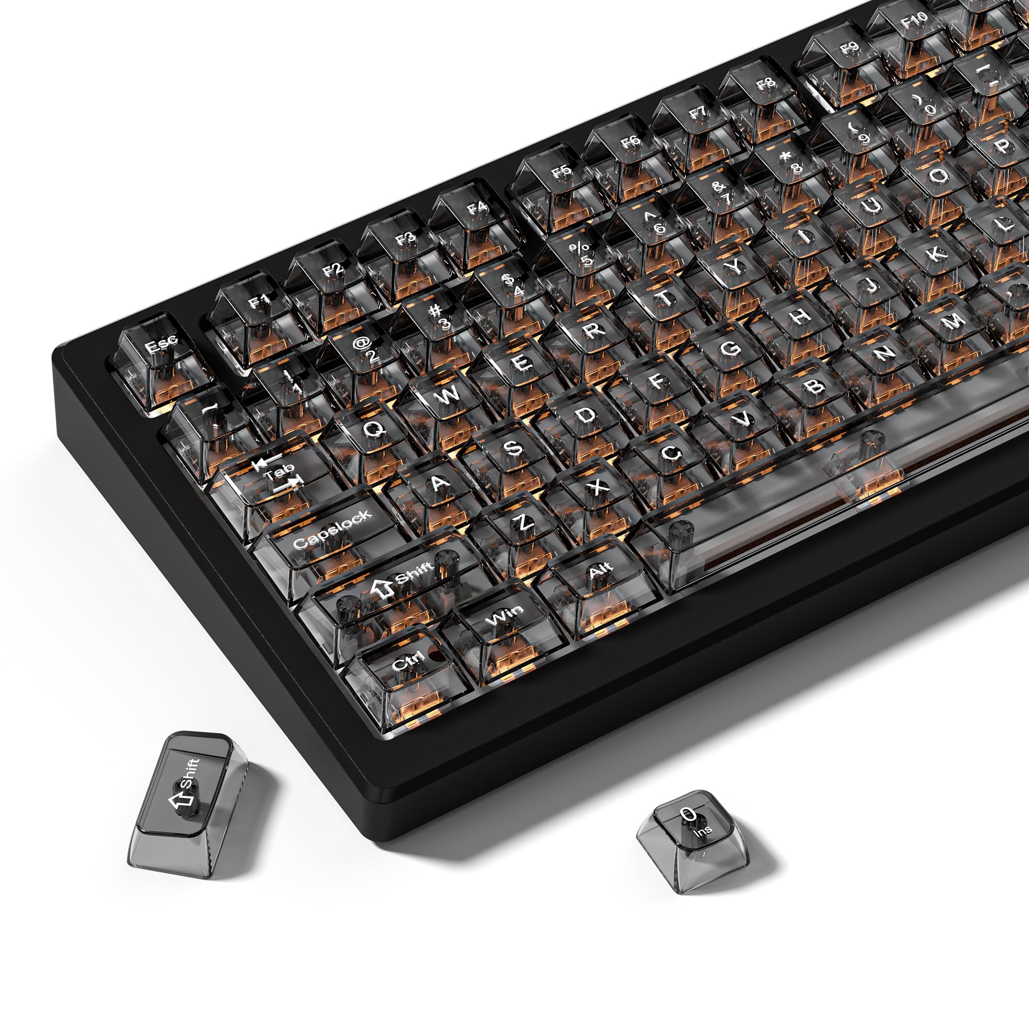 ブラッククリア キーボードキーキャップ、透明キーキャップ、クリスタルジェリーキーキャップセット、光を通す、チェリープロファイル、MXスイッチ用、メカニカルキーボード用、60 75 100%対応